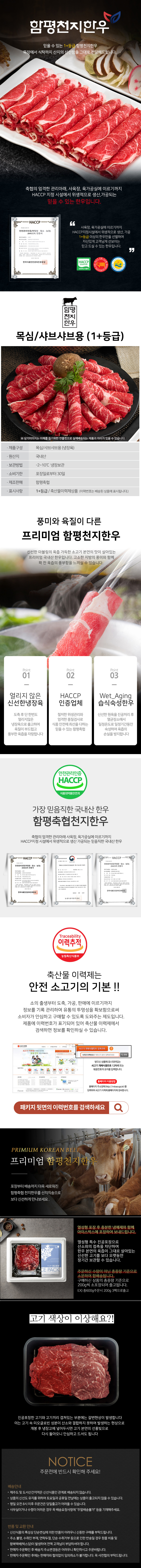 | 생산자(수입자) | 함평축협축산물유통센터 / 전라남도 함평군 학교면 학교길 281-75 1+등급 /축산물이력제시행(이력번호는 배송되는 상품에 표시됩니다.) |
