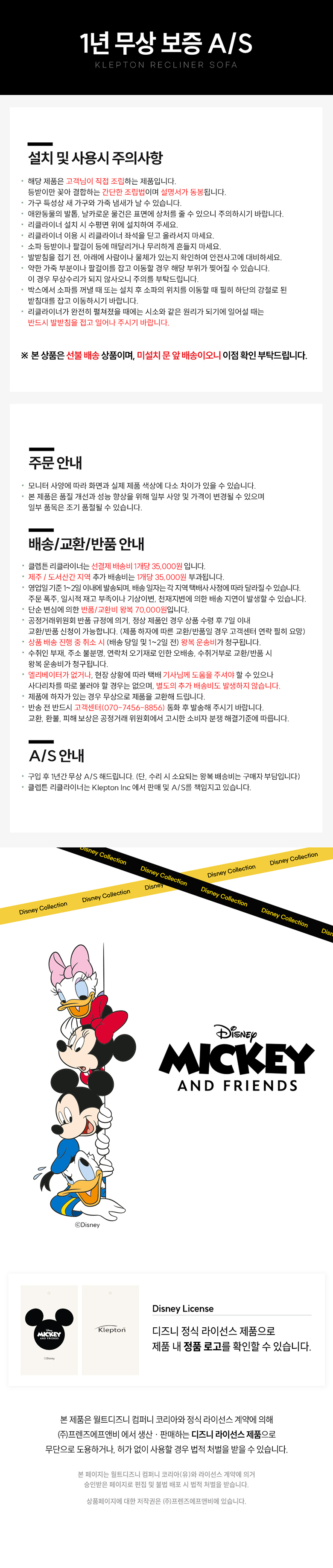 | 품명 | 디즈니 클렙튼 전동 1인용 리클라이너 소파 미키 |