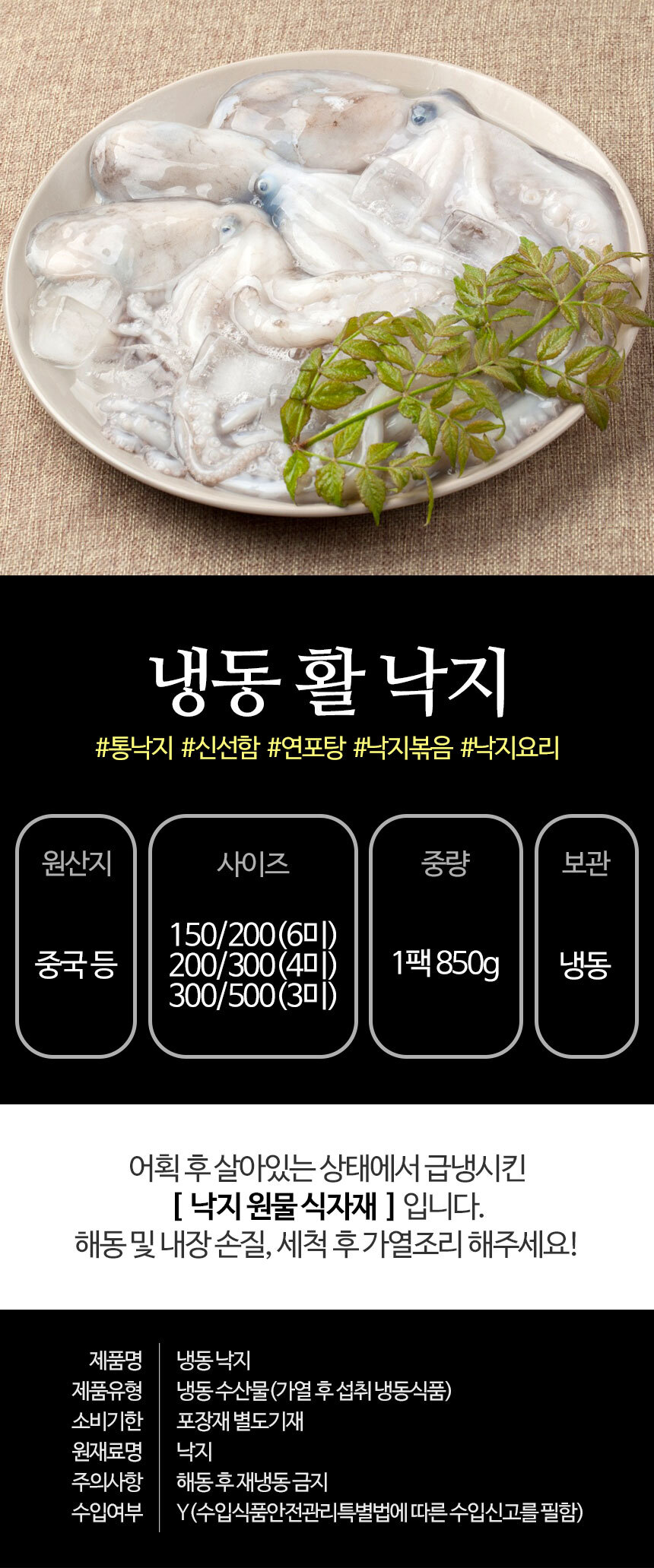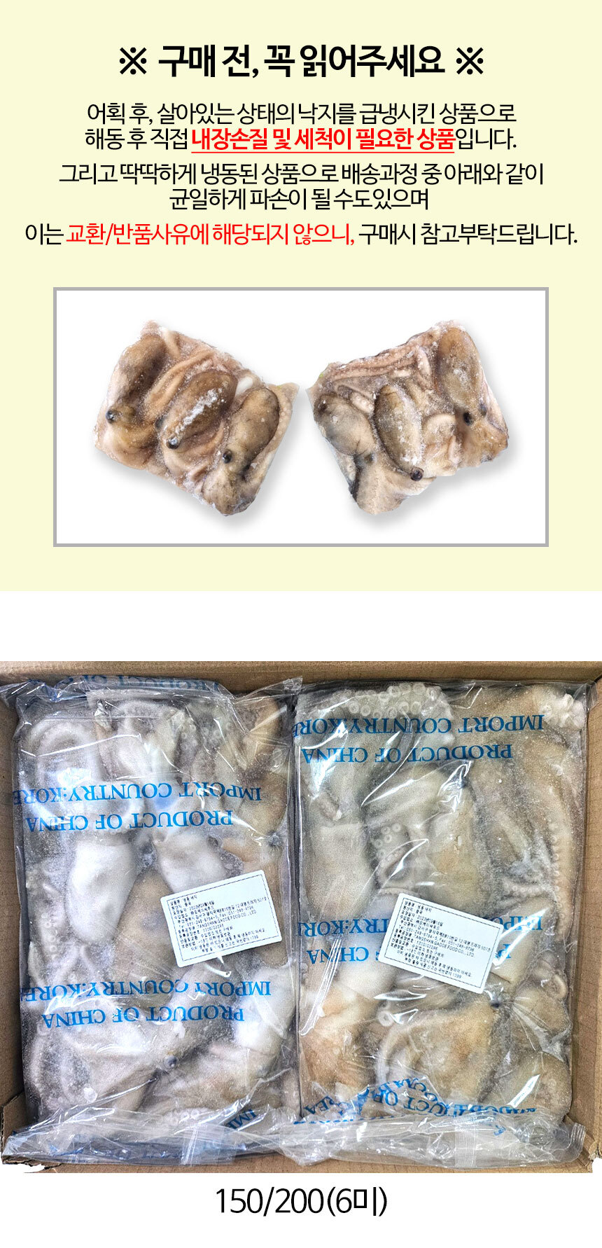 | 상품구성 | 냉동 활낙지 6미 1팩 |