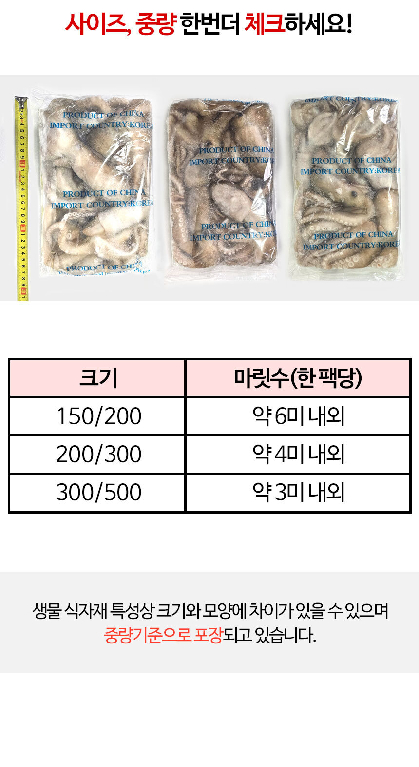 | 식품 등의 표시,광고에 관한 법뮬에 따른 소비자 안전을 위한 주의사항 | 이미 냉동된 바 있으니 해동 후 재냉동시키지 마시기 바랍니다. |