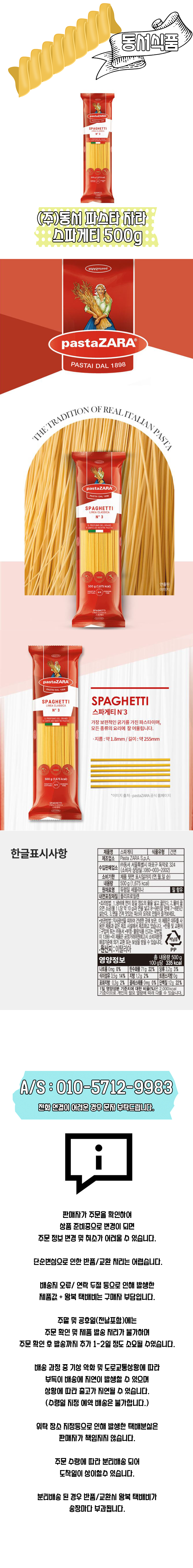 | 생산자 및 소재지/수입자 | Pasta ZARA S.p.A./이탈리아 |