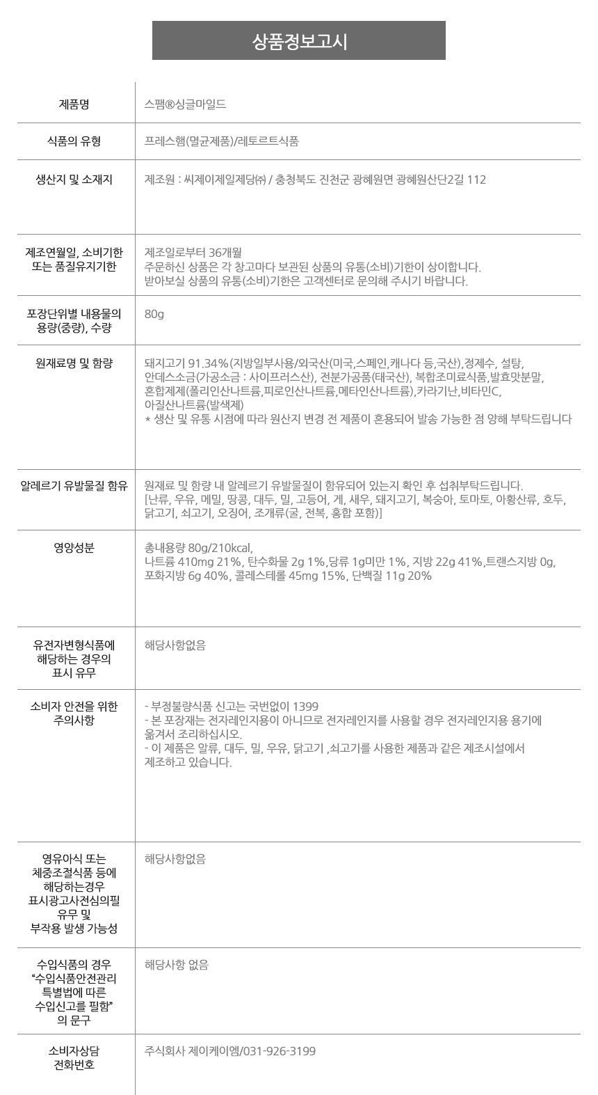 | 소비자상담 관련 전화번호 | 031-926-3199 |