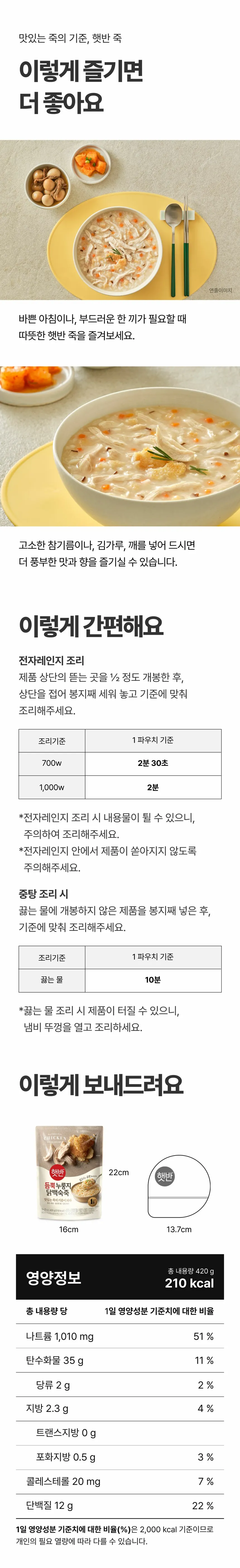 햇반 소프트밀 듬뿍 누룽지닭백숙죽 420g x3개상품상세_동원몰