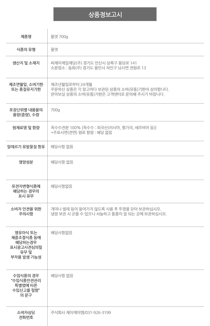 | 유전자변형식품 해당 여부 | 해당사항 없음 |