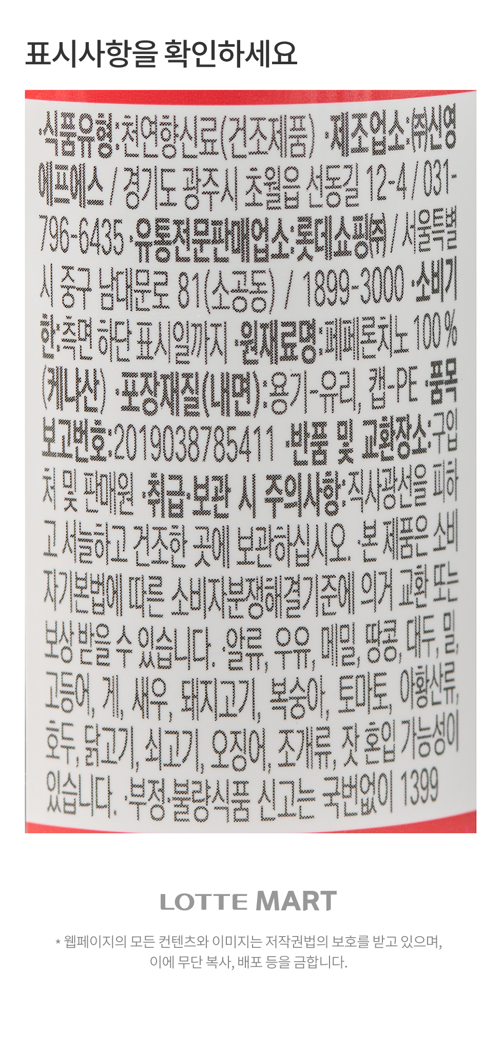 소비자안전을 위한 주의사항 상품상세 참조