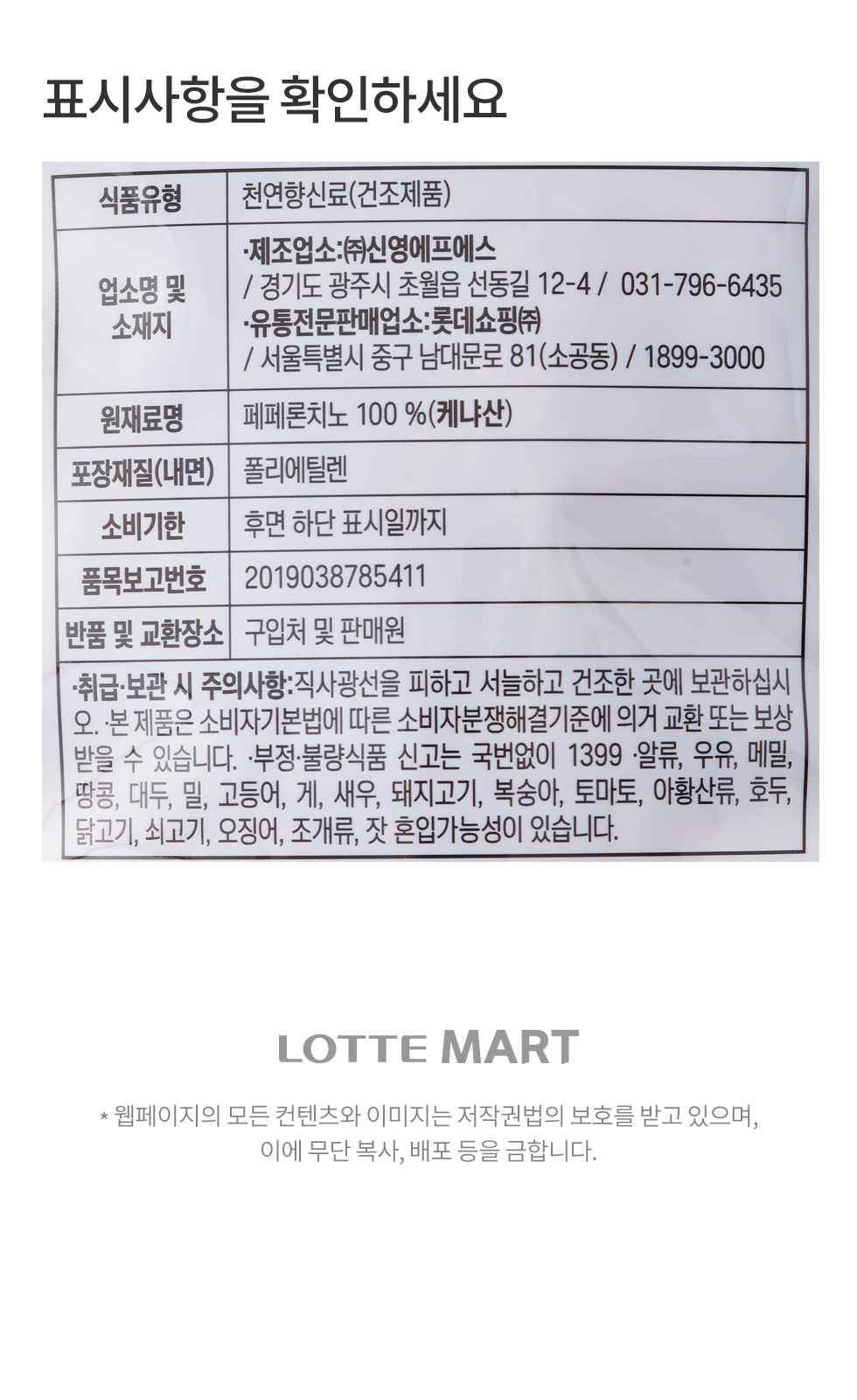 | 식품의 유형 | 상품상세 참조 |