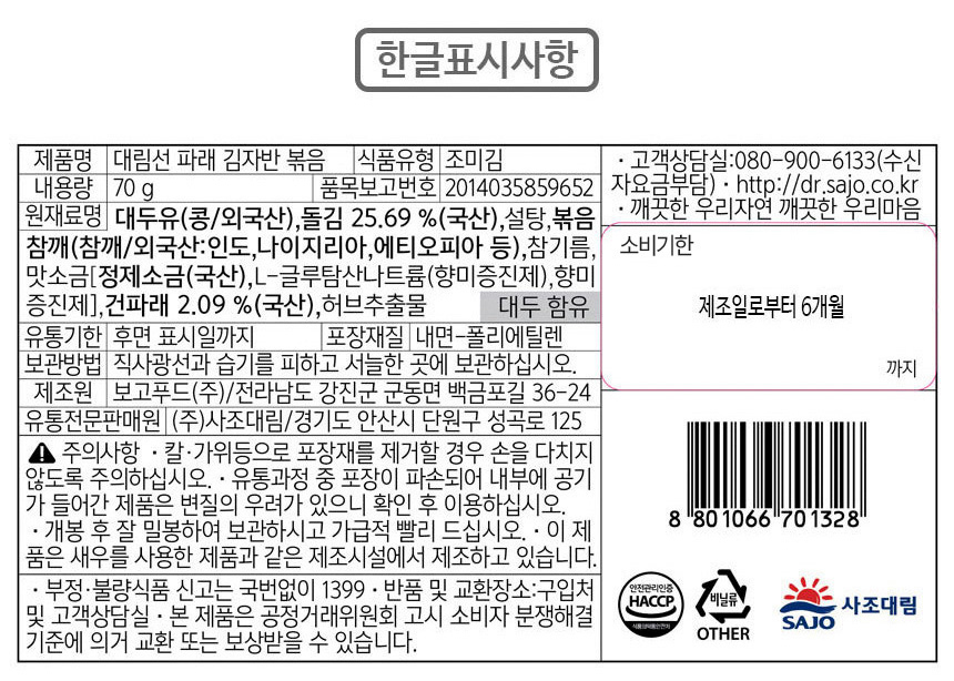 본 상품은 입점 판매자가 직접 등록한 내용으로 해당 상품의 거래 정보 및 거래에 대해서 동원에프앤비는 일체의 책임을 지지 않습니다.