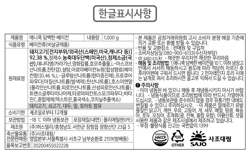 | 유전자변형식품 해당 여부 | 상세설명 참조 |