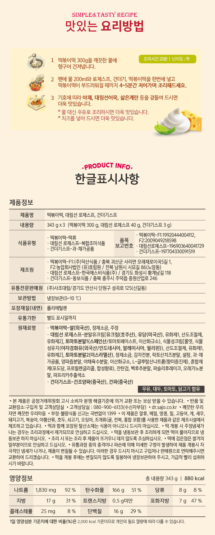 | 원재료 및 함량 | 상세설명 참조 |