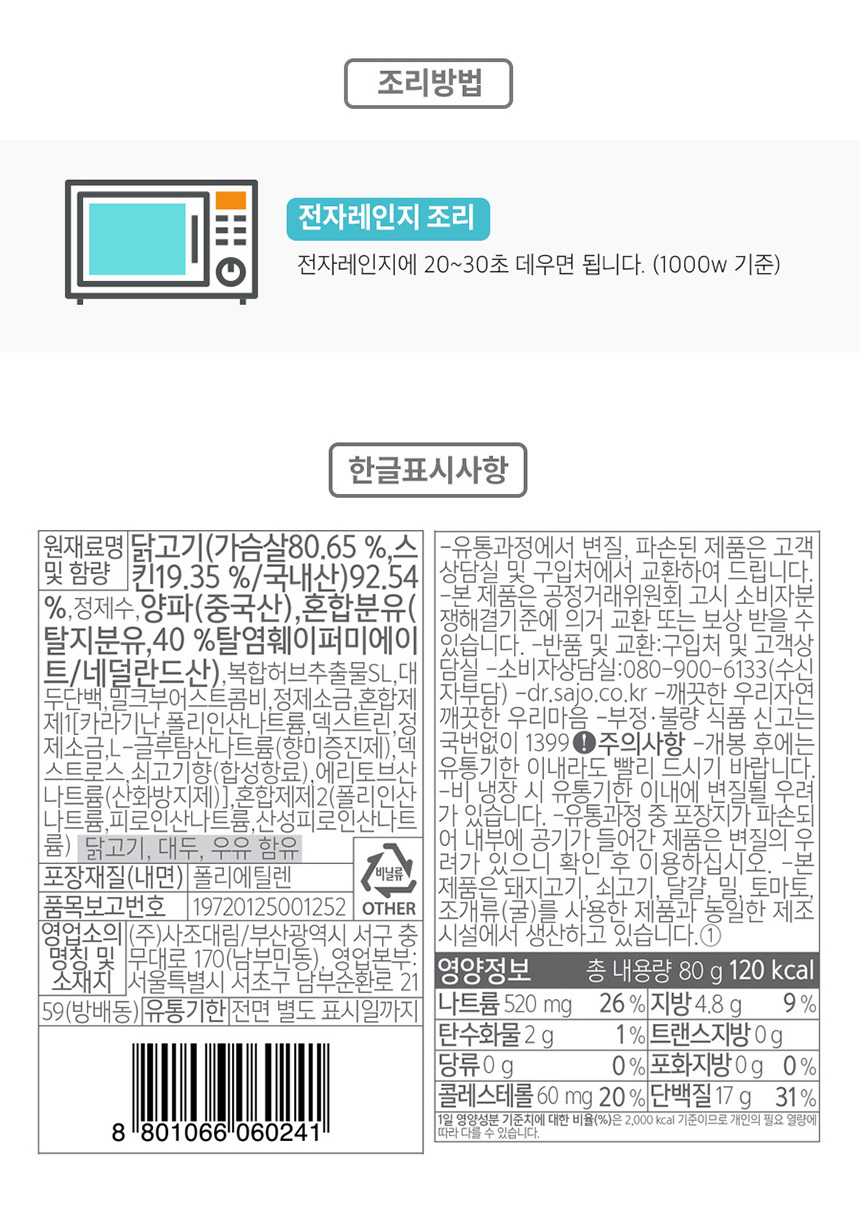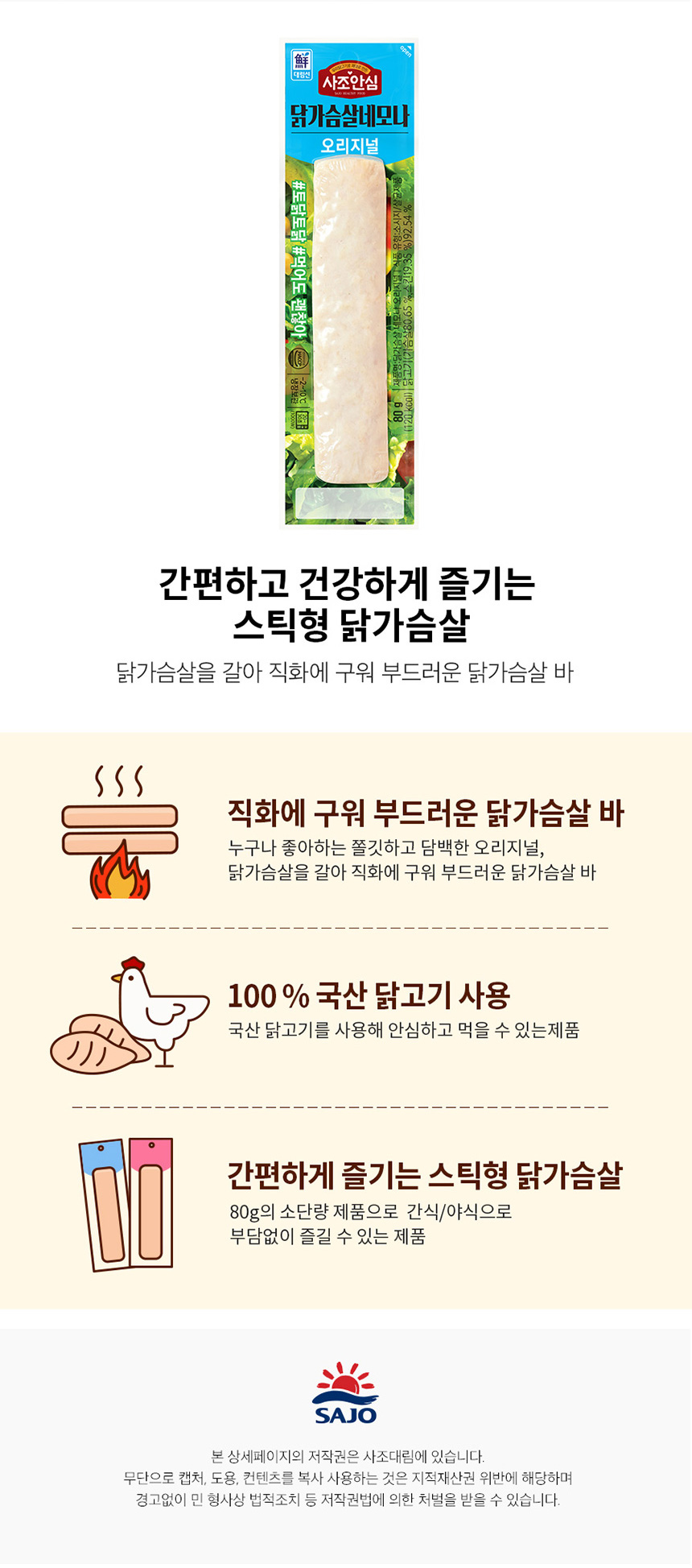 [사조대림] 닭가슴살 네모나 오리지널 80g X 20개상품상세_동원몰