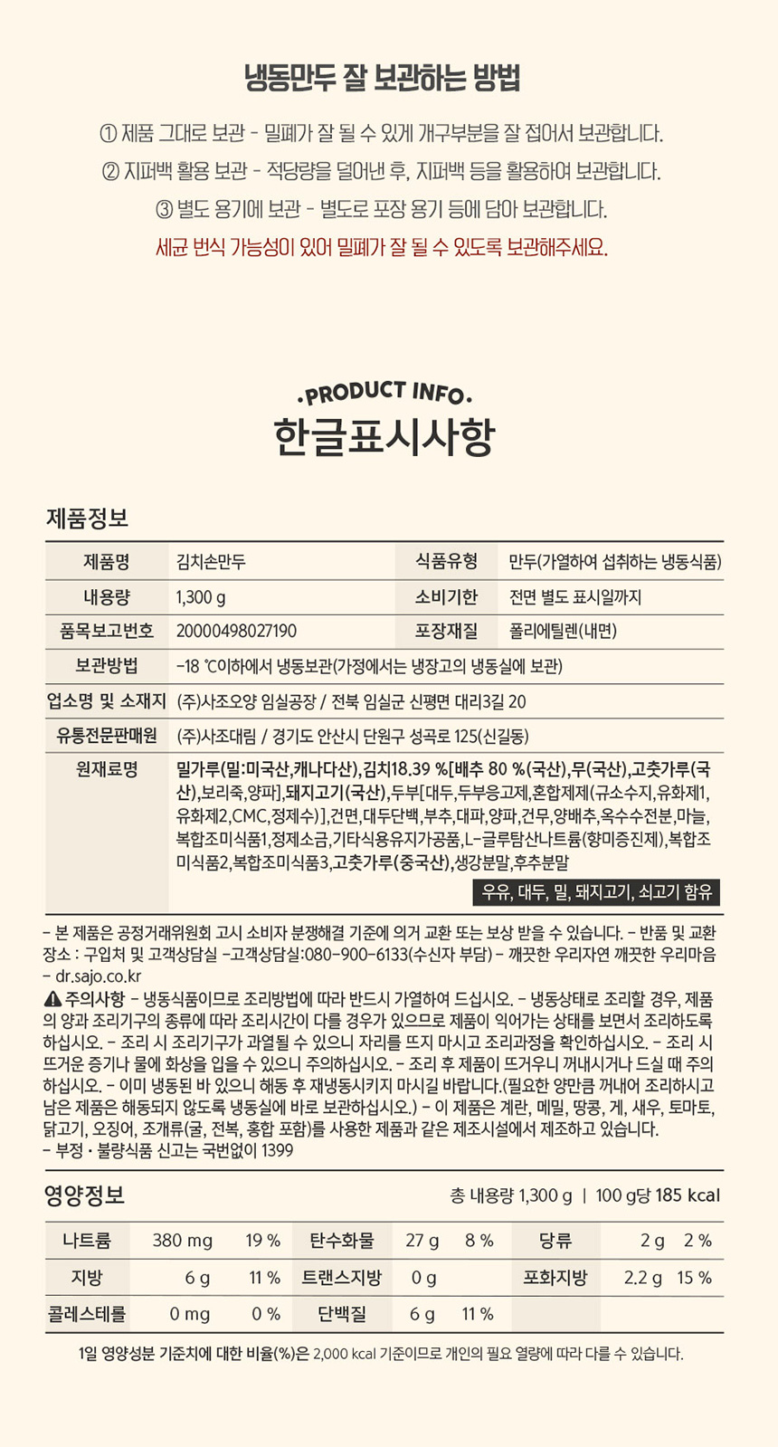 | 영양성분 | 상세설명 참조 |