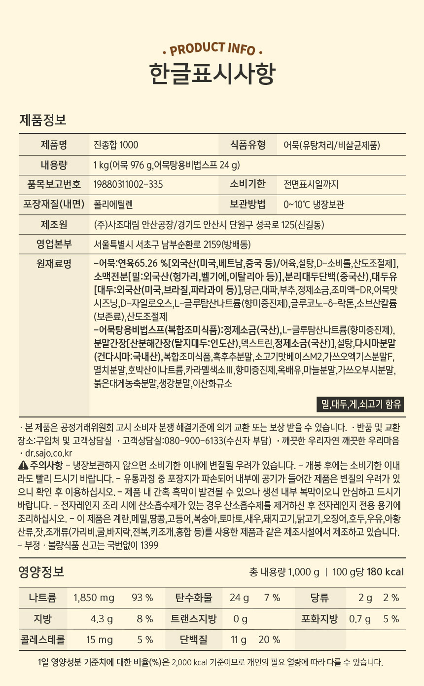 | 영양성분 | 상세설명 참조 |