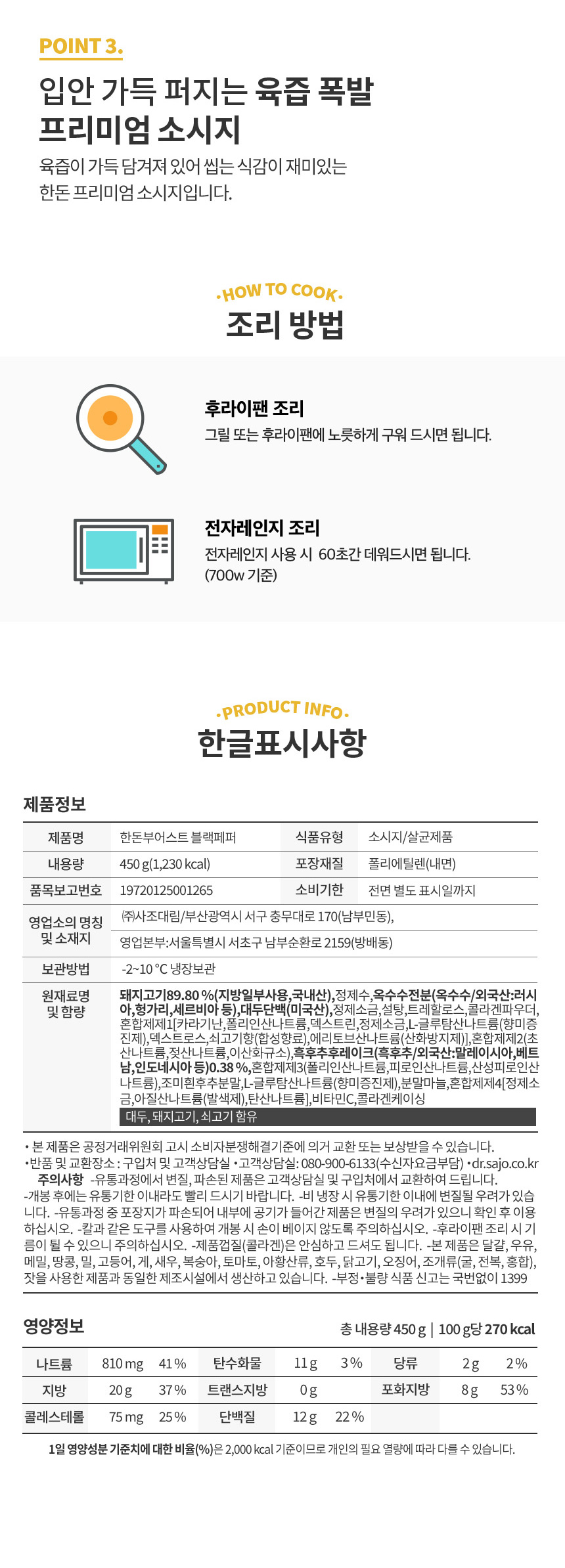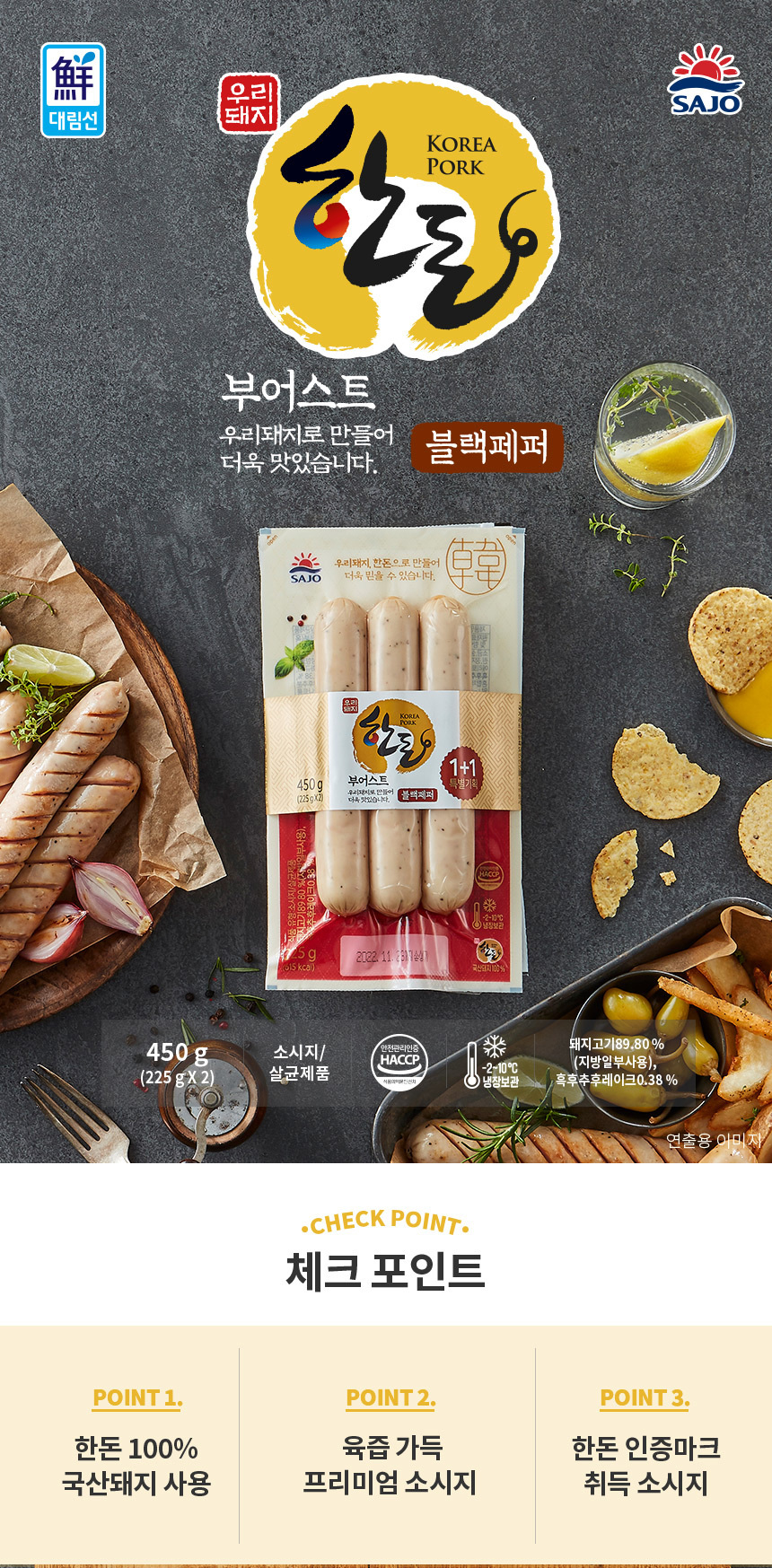 [사조대림] 한돈부어스트 블랙페퍼 450g(225*2) X 3개상품상세_동원몰