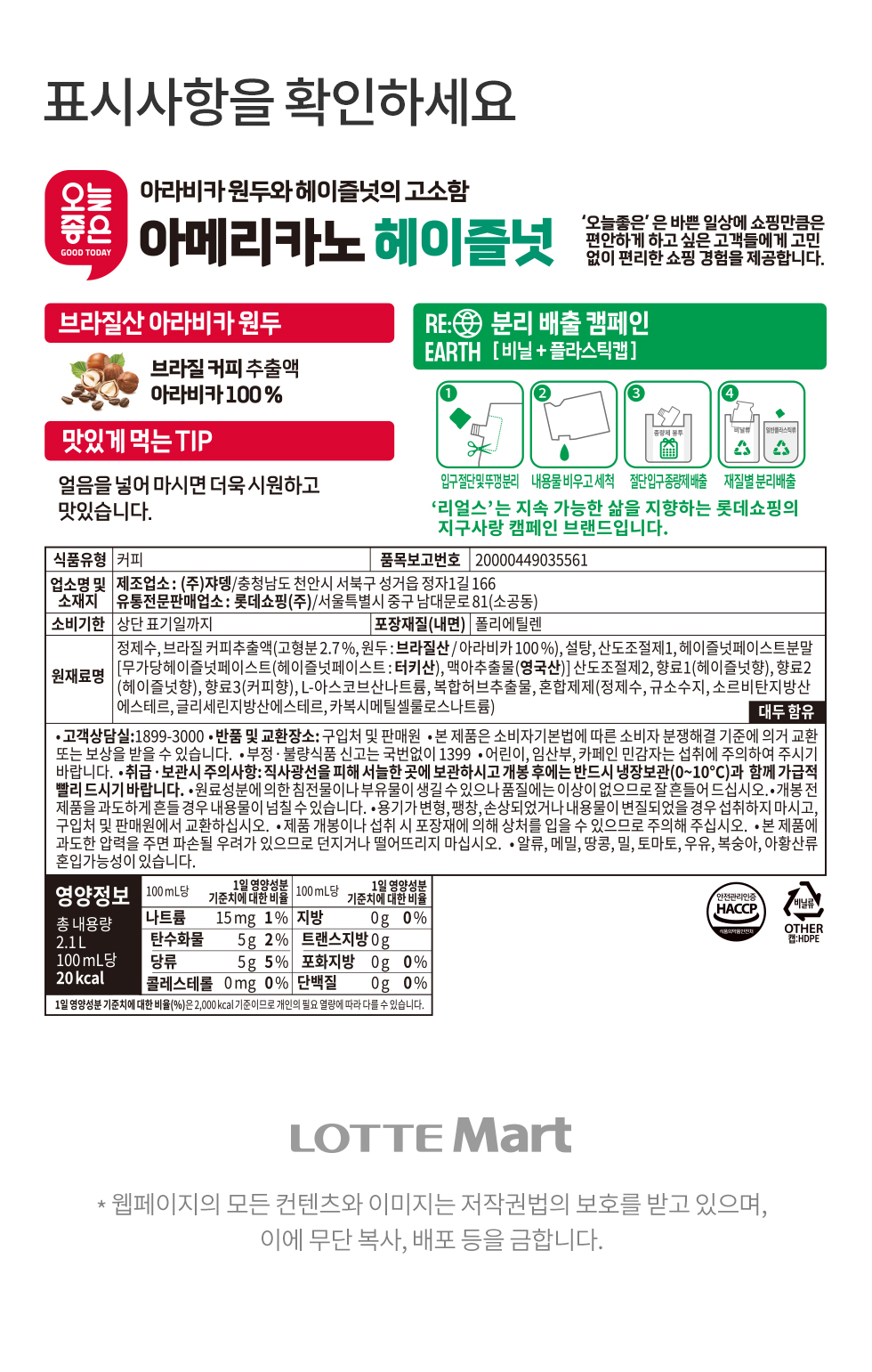 | 원재료 및 함량 | 상세설명참조 |