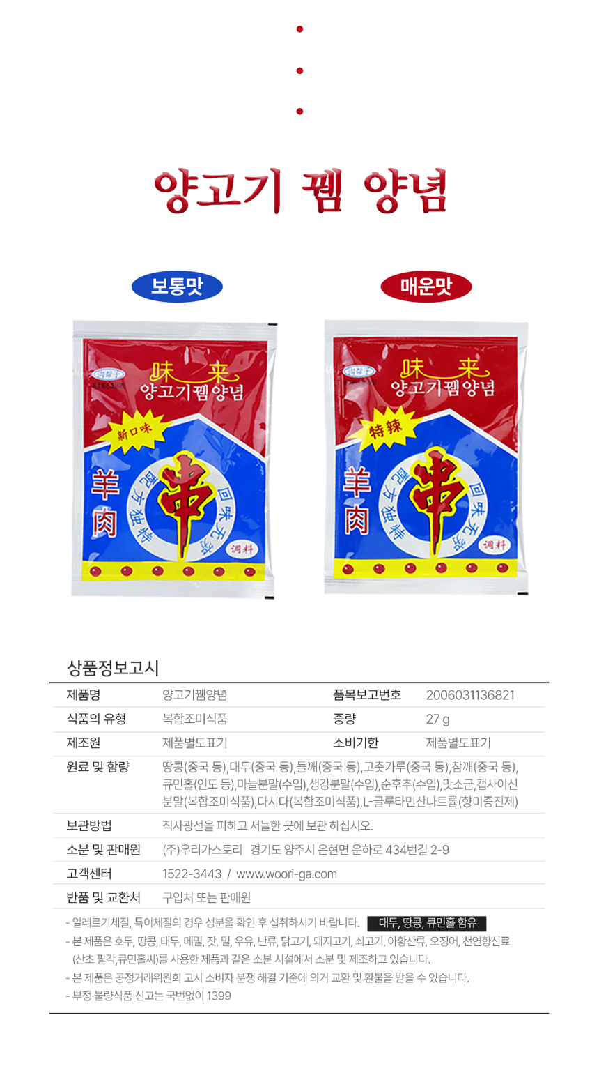 | 소비자안전을 위한 주의사항 | 알레르기체질,특정질환, 특이체질,의 경우 과민반응이 나타날 수 있으므로 표기사항 확인 후 섭취요망 이제품은 밀,대두,우유,굴,소고기,조개류를 사용한 제품과 같은 소분시설에서 소분 및 제조하고 있습니다. 본 제품은 공정거래 위원회 고시 소비자 분쟁 해결 기준에 의거 교환 또는 보상 받으실수 있습니다. 부정.불량 식품 신고는 국번 없이 1399 |