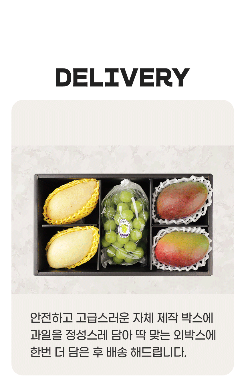 | 원산지 | 망고/태국/100%, 애플망고/페루/100%, 샤인머스캣/국내산/100% |