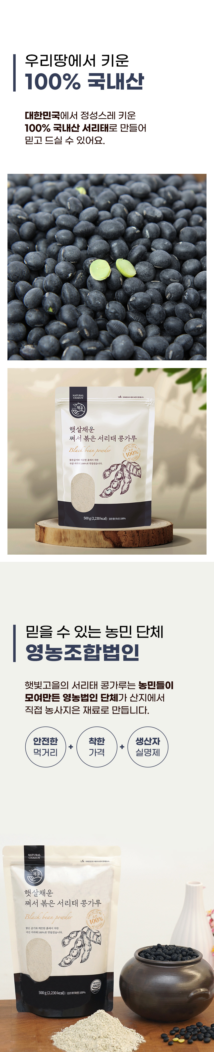| 품명 | 햇살채운 쪄서 볶은 서리태 콩가루 |