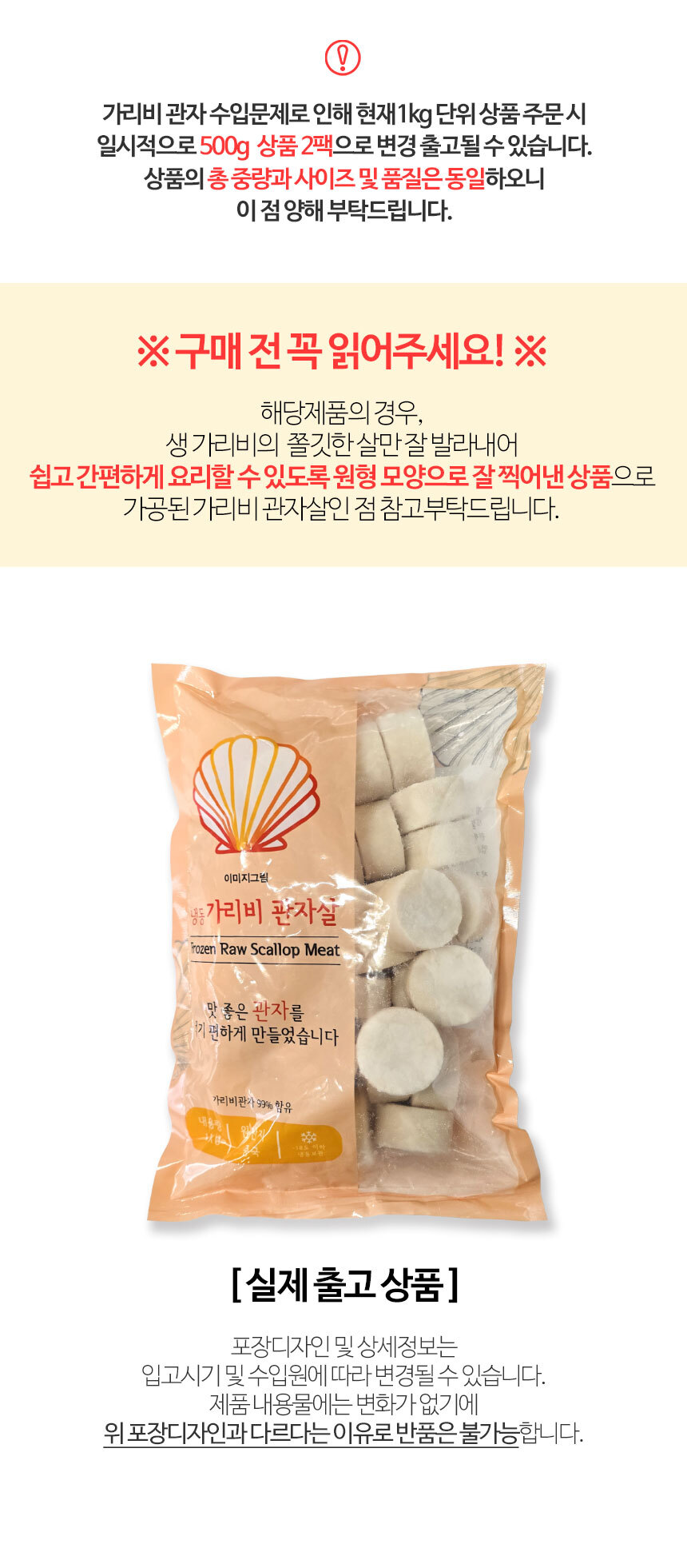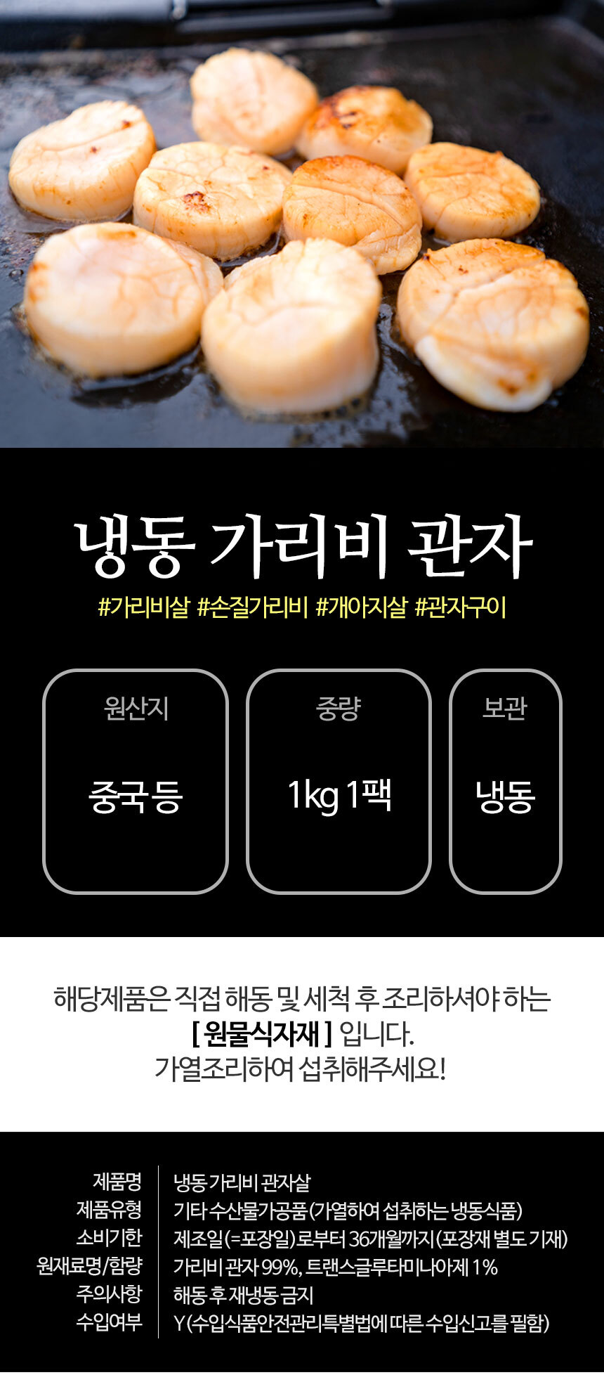 | 상품구성 | 가리비 관자살 1kg 1팩 |