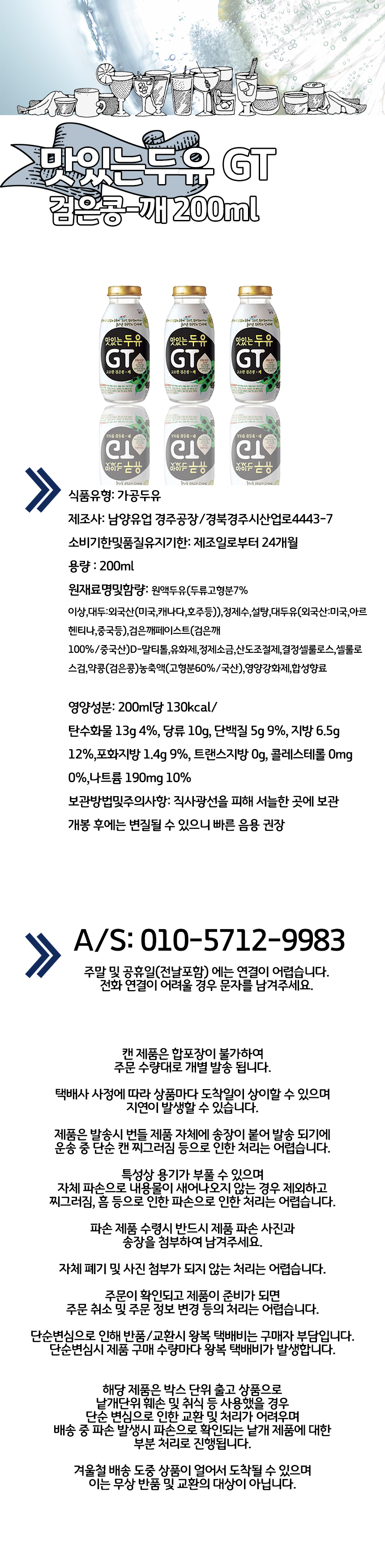 | 포장단위별 내용물의 용량(중량),수량 | [G] 남양 맛있는 두유 GT 고소한 검은콩-깨 200mlx20개 |