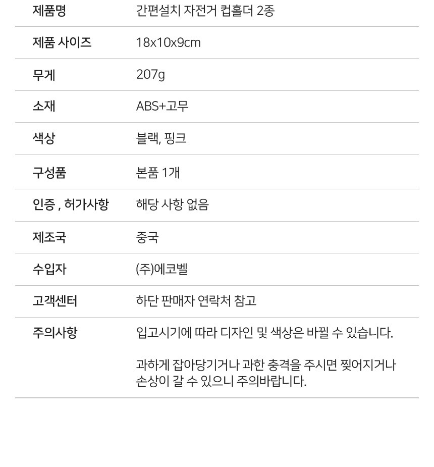 | 품명 및 모델명 | 간편설치 자전거 컵홀더 2종 / ECLEBISU15_E |