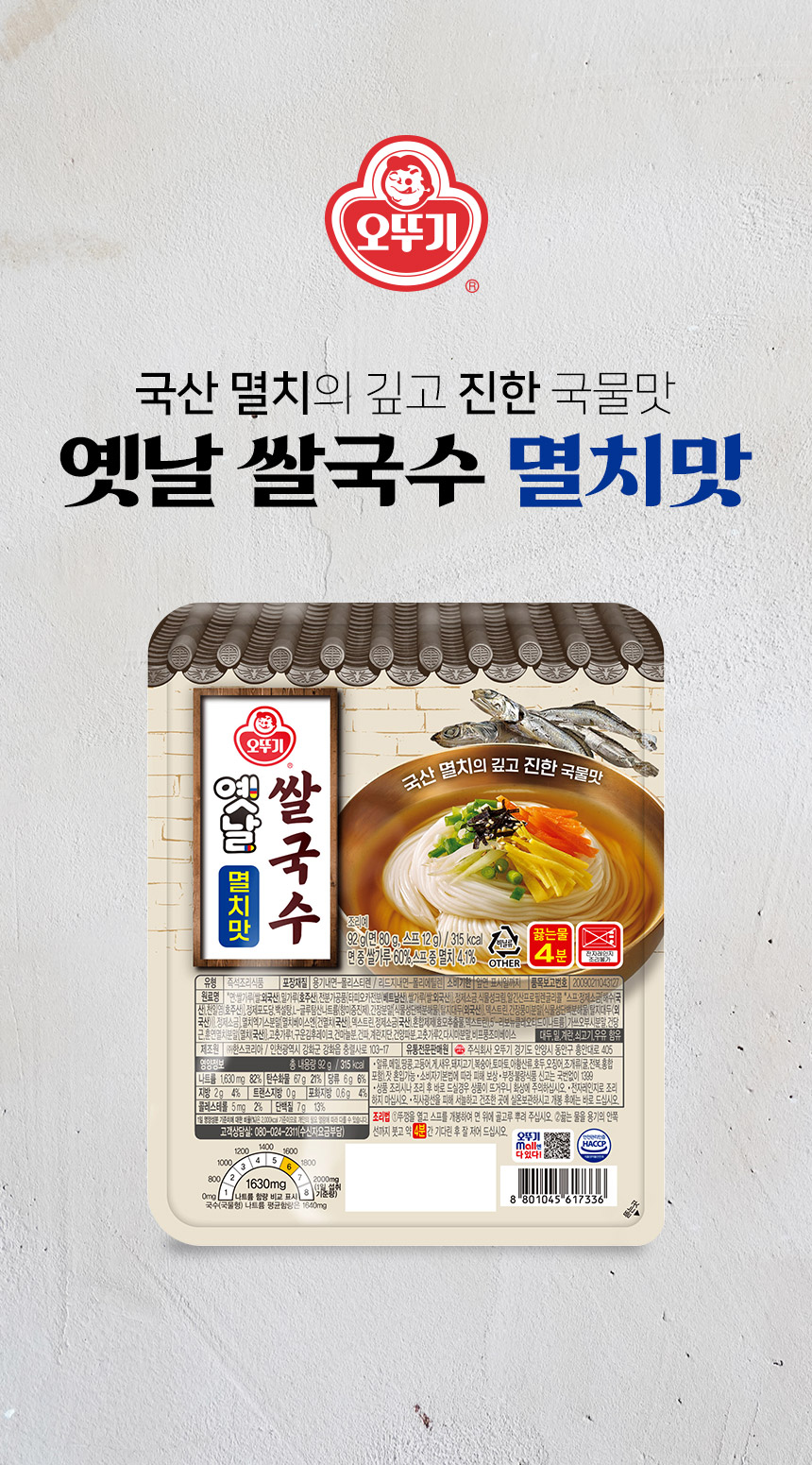 | 품명 | [오뚜기] 옛날쌀국수 멸치맛92g 12개입 |