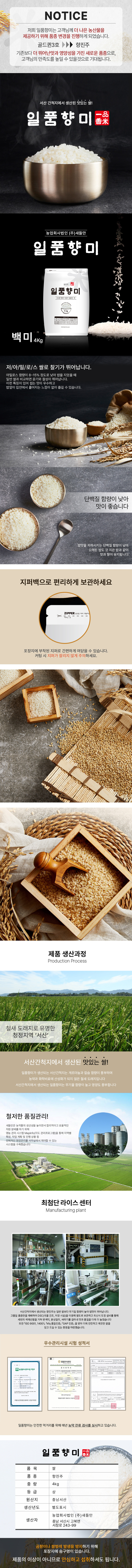 | 식품 등의 표시,광고에 관한 법뮬에 따른 소비자 안전을 위한 주의사항 | 쌀 신선하게 보관하기 - 쌀은 수분이 증발하면 금이가기 쉽고, 맛이 변질됩니다. 직사광선은 피하고 서늘한 곳에서 보관해주세요. |