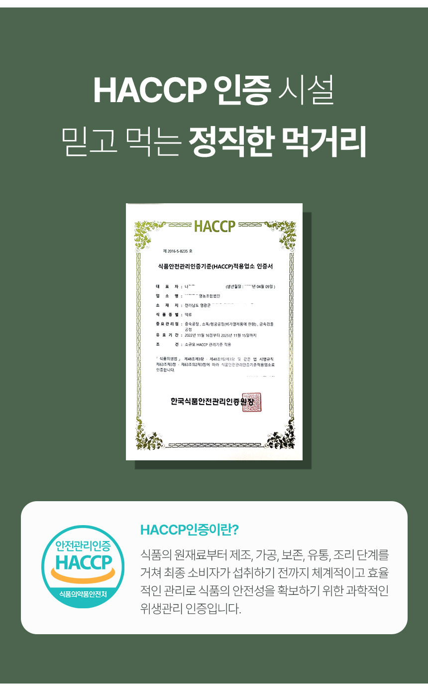 | 생산자 및 소재지/수입자 | 번영푸드영농조합법인 전라남도 영광군 영광읍 영대로 670-12 |
