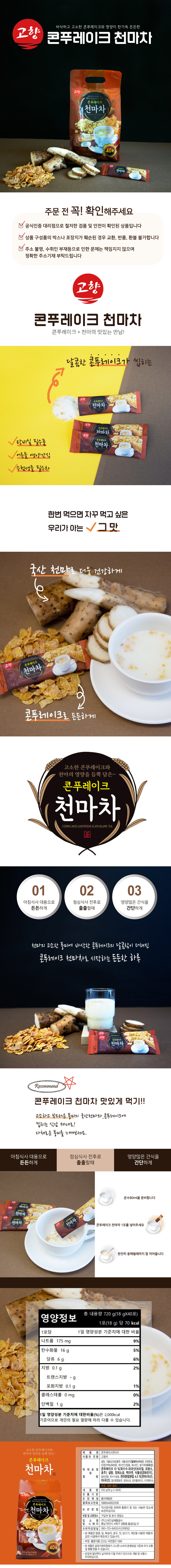 | 포장단위별 내용물의 용량(중량),수량 | 고향 콘푸레이크 천마차 40T |