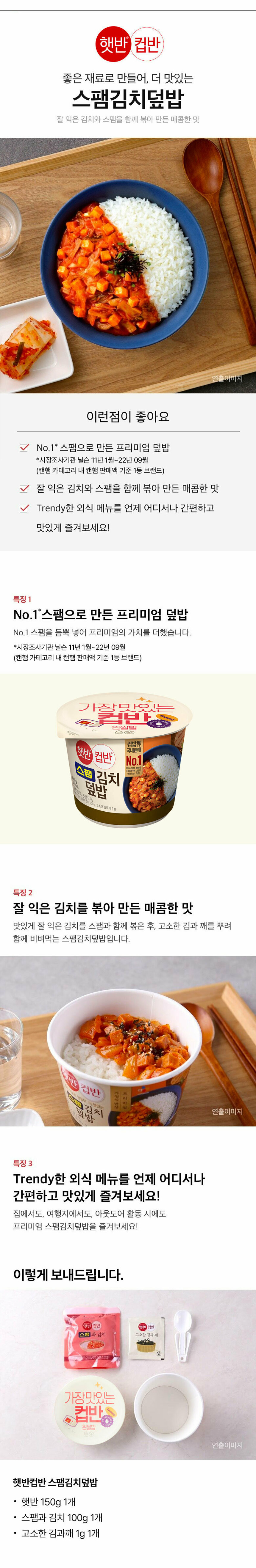 [1등 컵밥] 햇반 컵반 스팸김치덮밥 251g x23개+치킨마요덮밥 233g x1개상품상세_동원몰