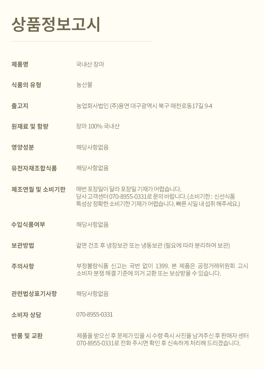 | 원산지 | 장마 100% 국내산 |