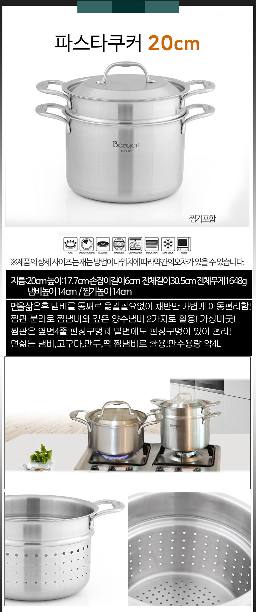 | 품명 및 모델명 | 한일스텐레스 베르겐 통5중 304스텐 인덕션 파스타쿠커 냄비 20cm |