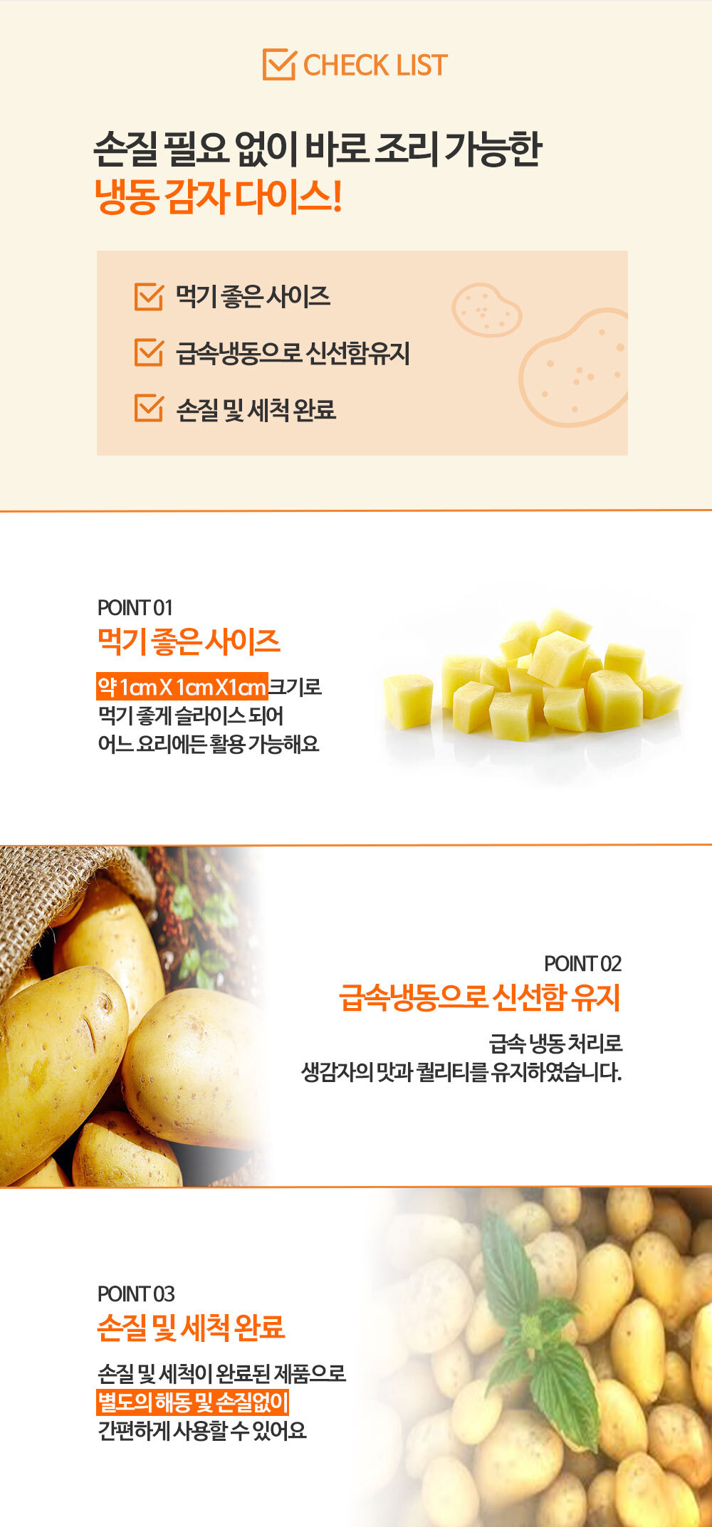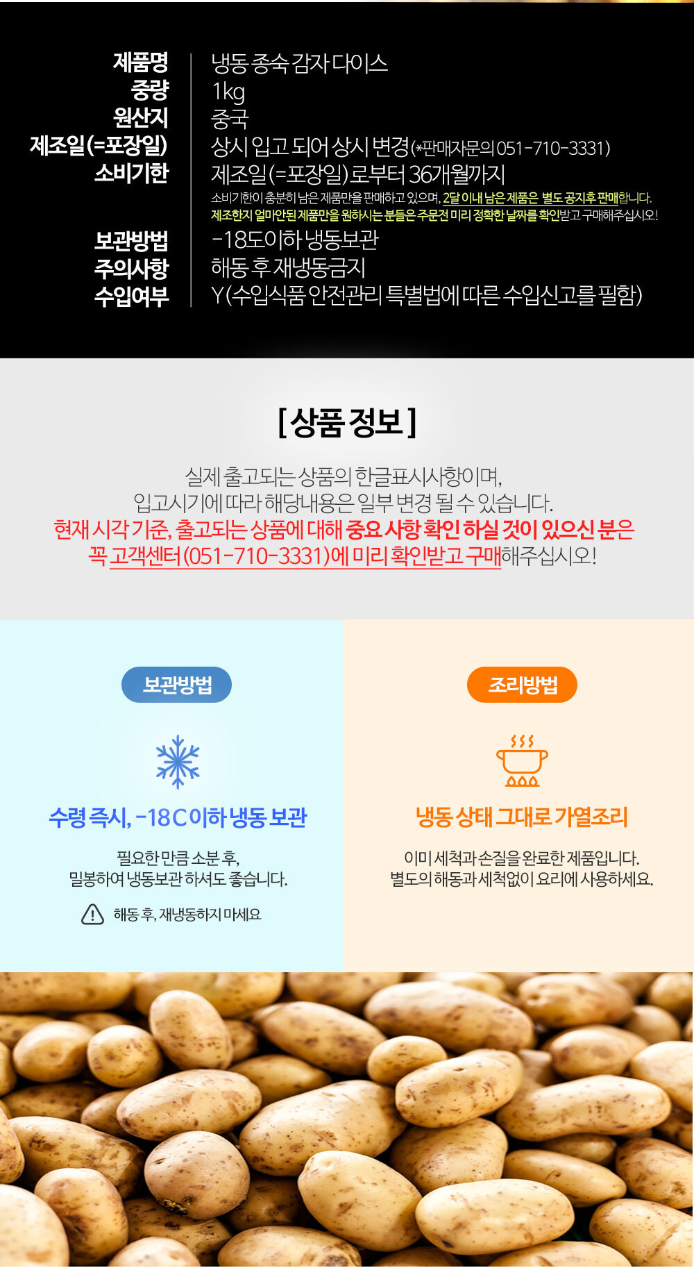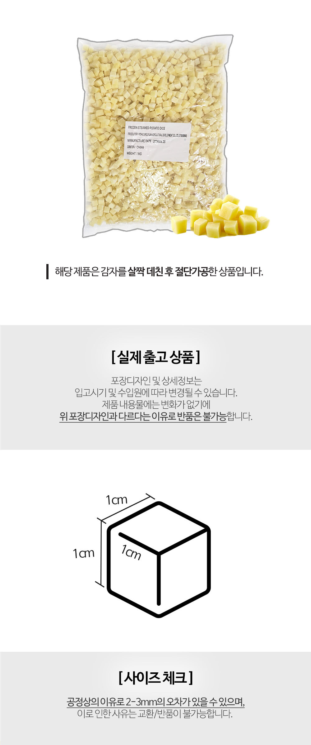 | 상품구성 | 냉동 감자 다이스 1kg 1팩 |