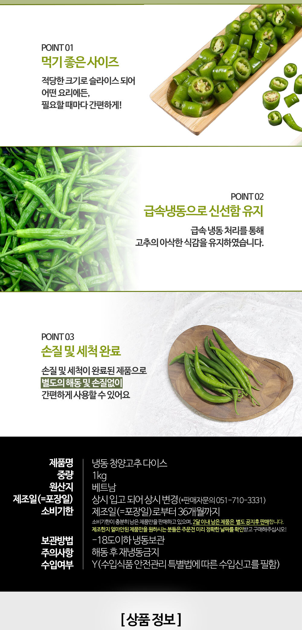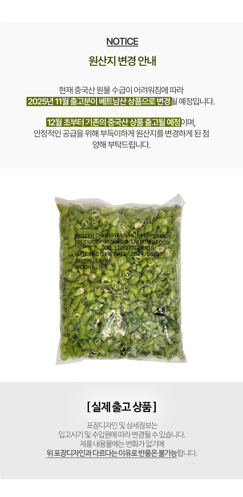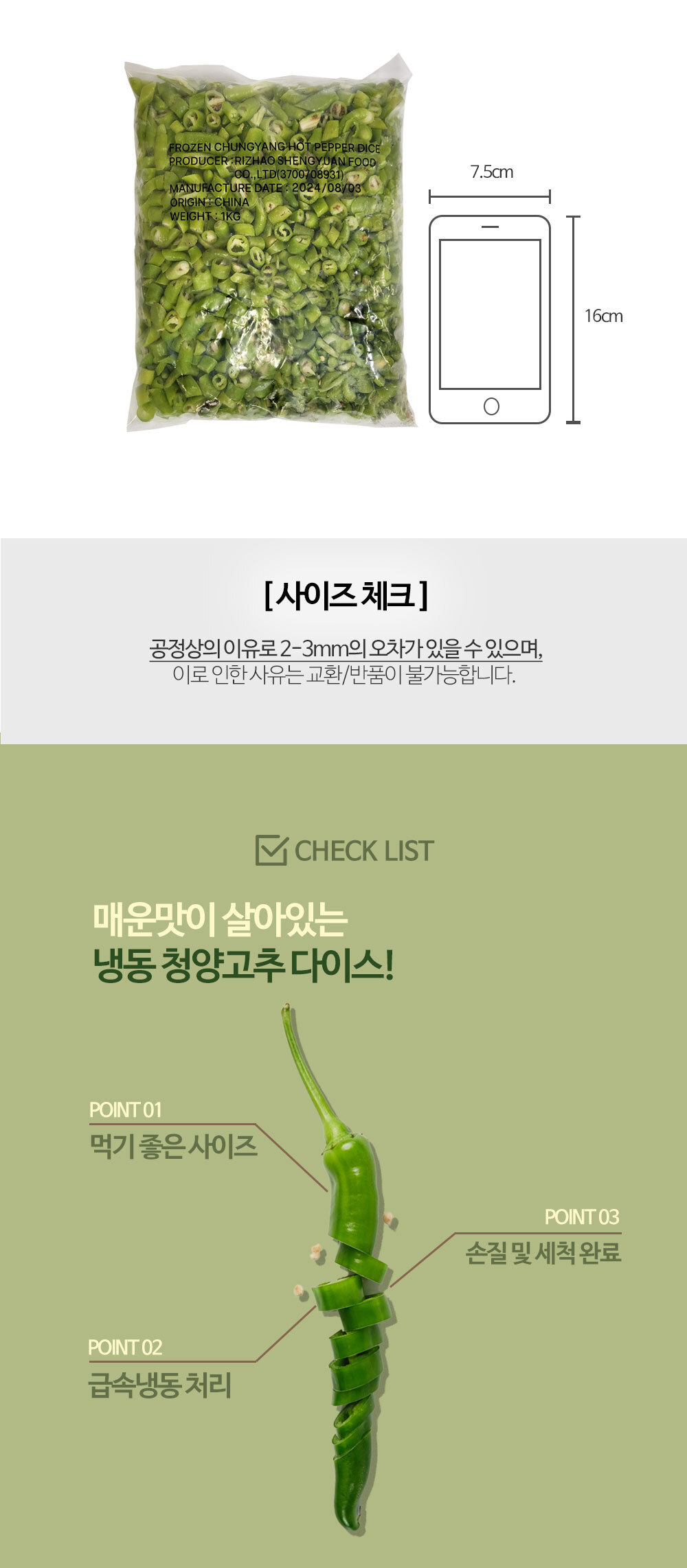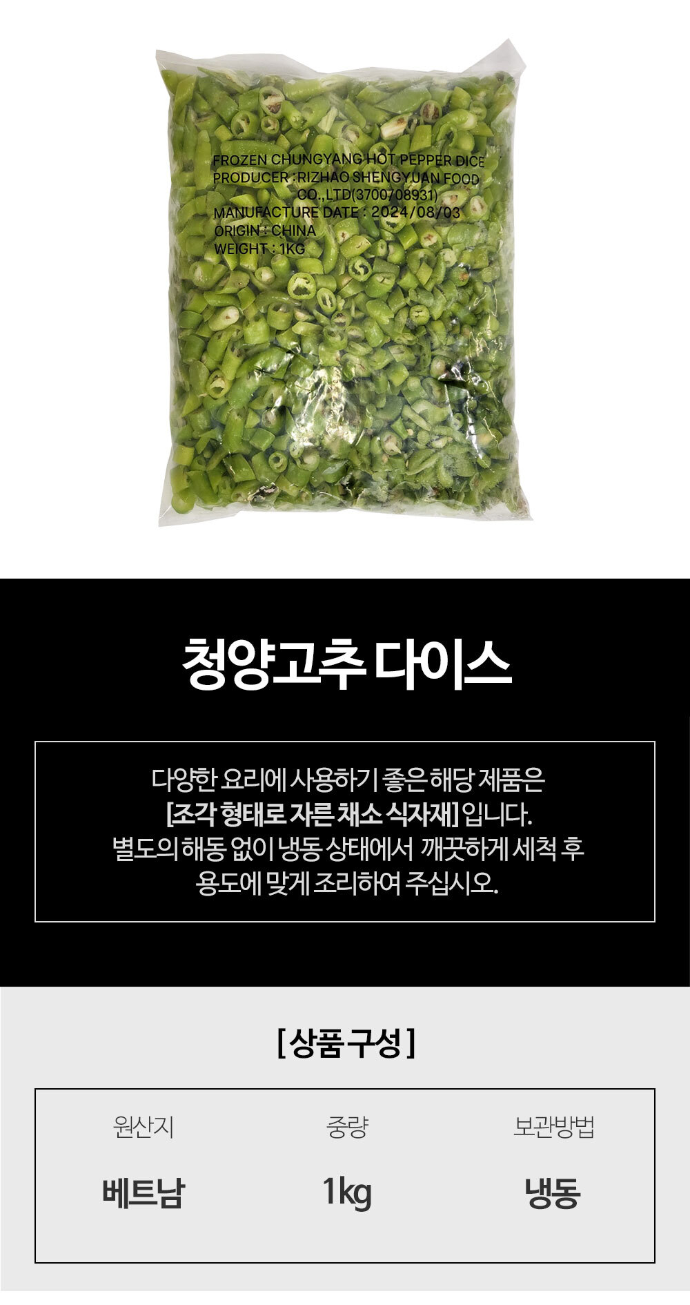 | 상품구성 | 냉동 청양고추 다이스 1kg 1팩 |