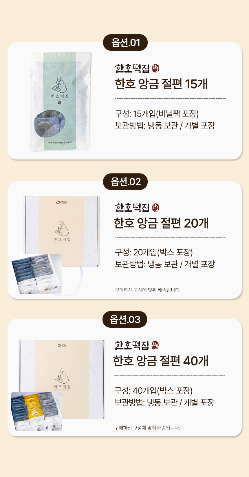 | 품명 | [한호떡집] 굳지않는 절편 앙금떡(쑥) 15개입 |