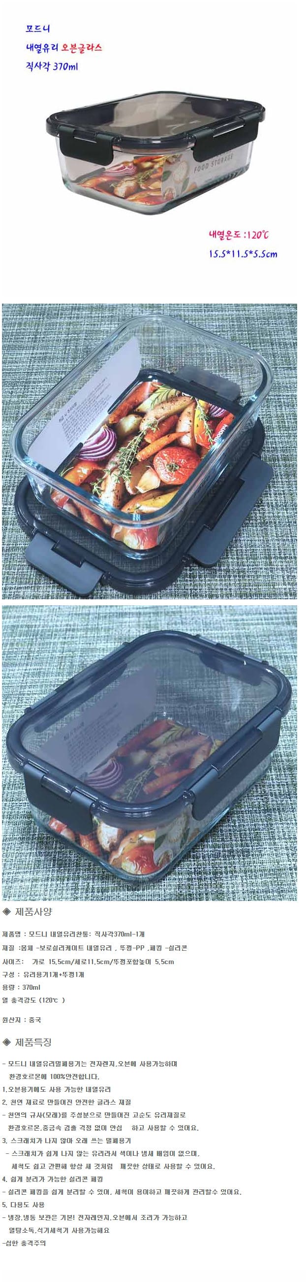 | 상품명:모드니 밀폐용기 오븐 글라스 반찬 용기 직사각 370ml |