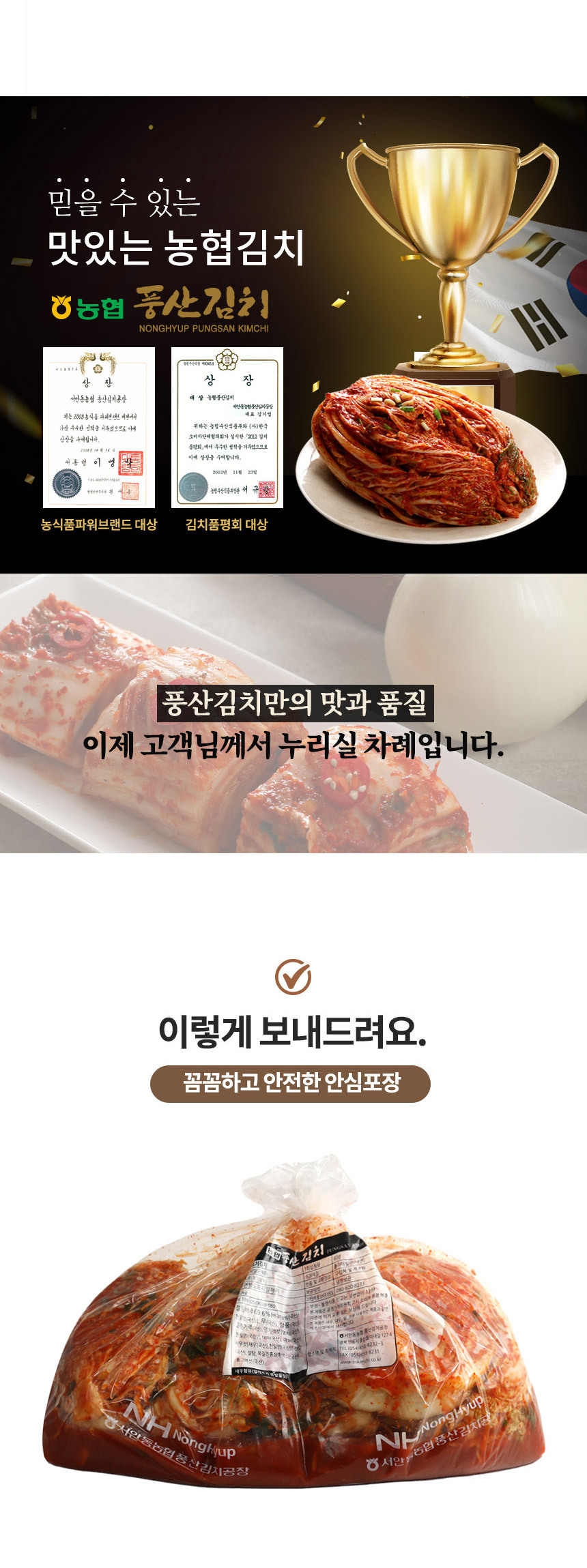 | 포장단위별 내용물의 용량(중량),수량 | 농협 풍산김치 프리미엄 포기김치 10kg (대용량) |