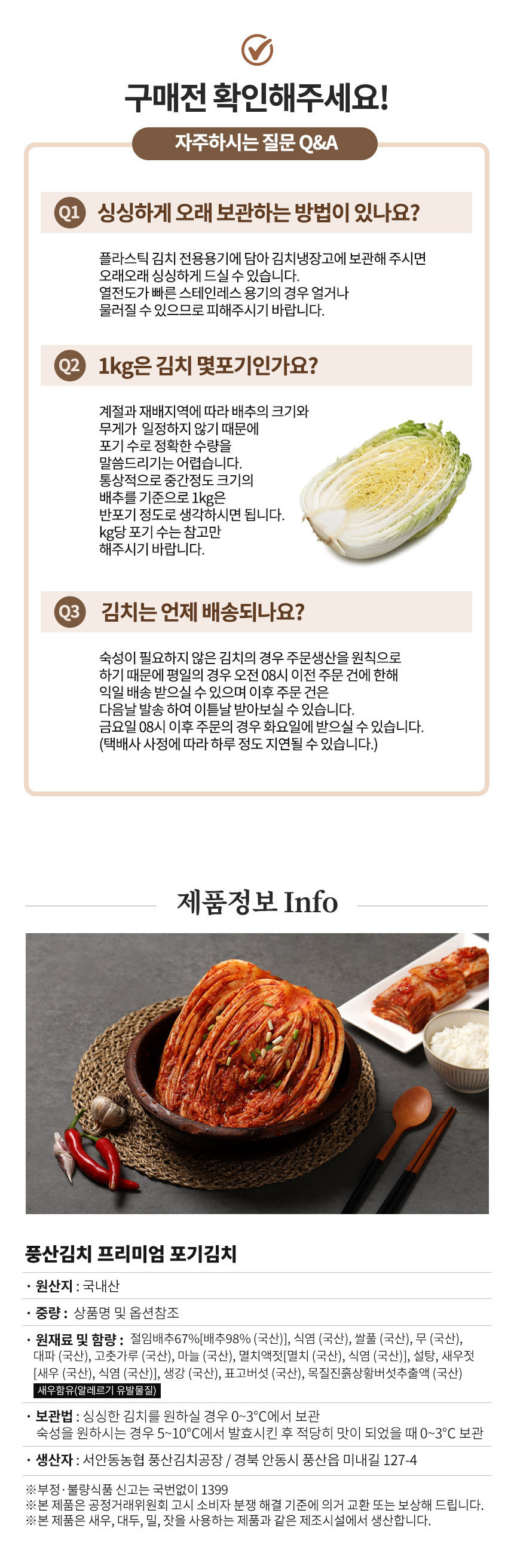 | 생산자 및 소재지/수입자 | 서안동농협 풍산김치공장 경북 안동시 풍산읍 미내길 127-4 |