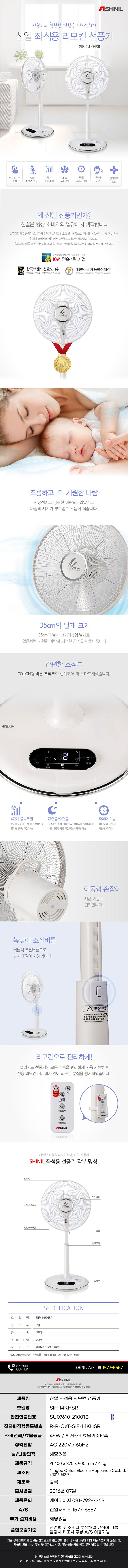 | 품명 및 모델명 | [신일] 좌석용 35cm 리모컨형 선풍기 SIF-14KHSR |