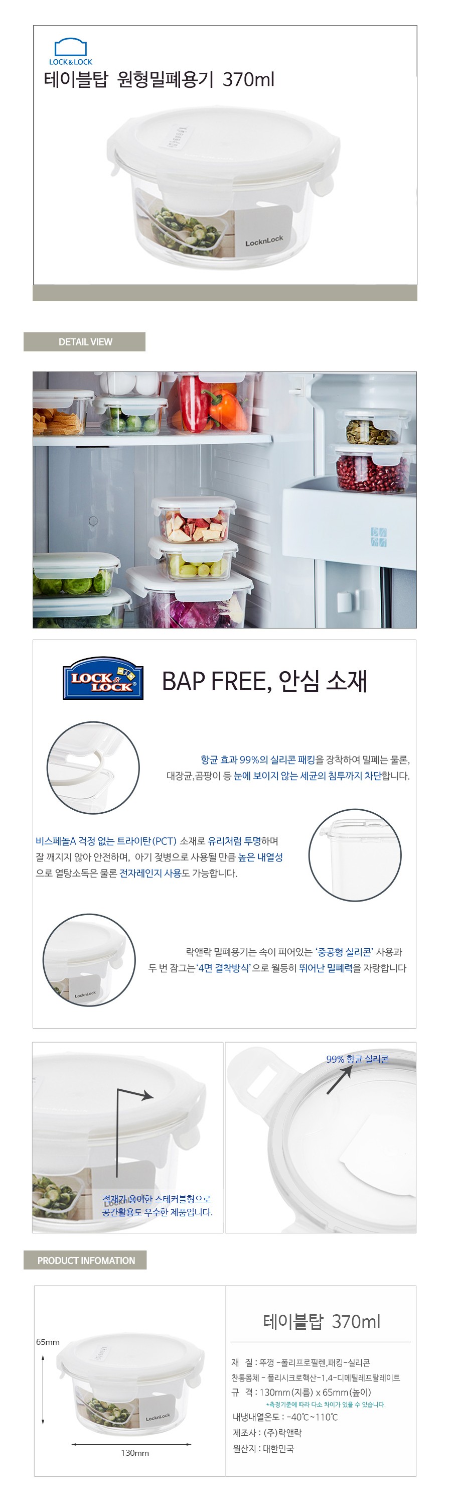 | 상품명:락앤락 테이블탑 원형 밀폐용기 370ml 주방용기 |