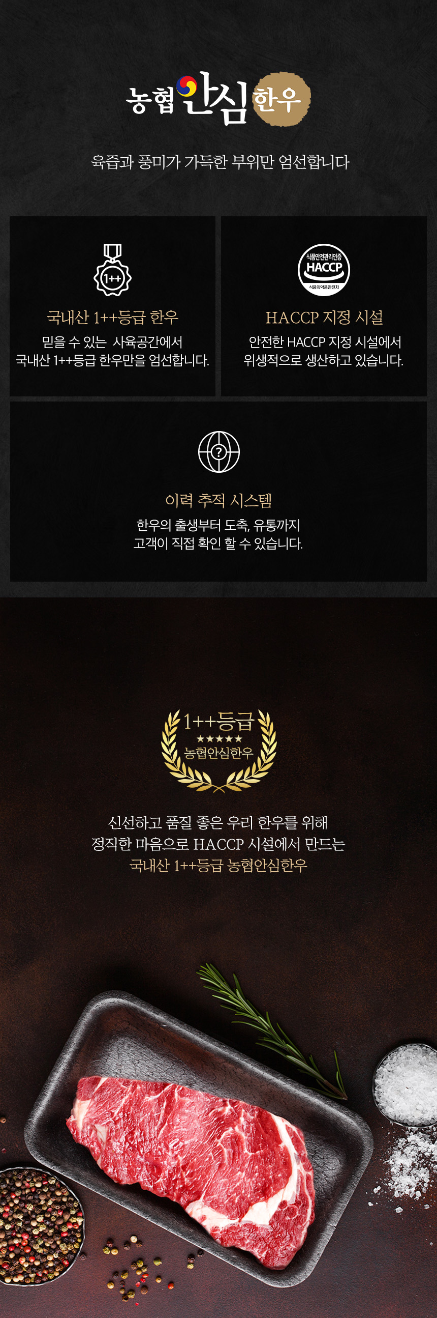 | 생산자(수입자) | 블랙홀푸드 / 경기도 화성시 양감면 은행나무로 62번길 92-41,1층 축산법에 따른 등급 표시 1++등급(7이상)/ 쇠고기 이력 추적시스템 / HACCP 인증/이력번호 표시제품으로 수령하는 고객님들이 직접 이력번호를 확인할 수 있음 |