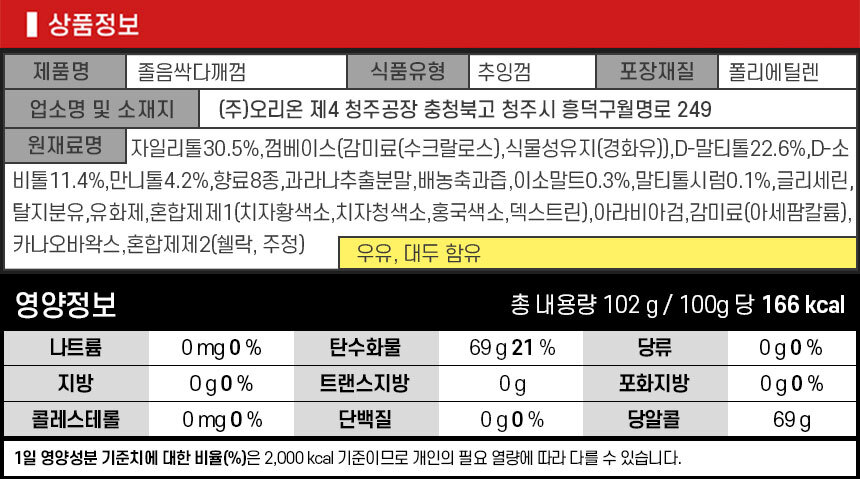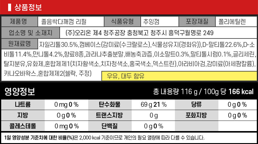 | 유전자변형식품 해당 여부 | 상세페이지 참조 |