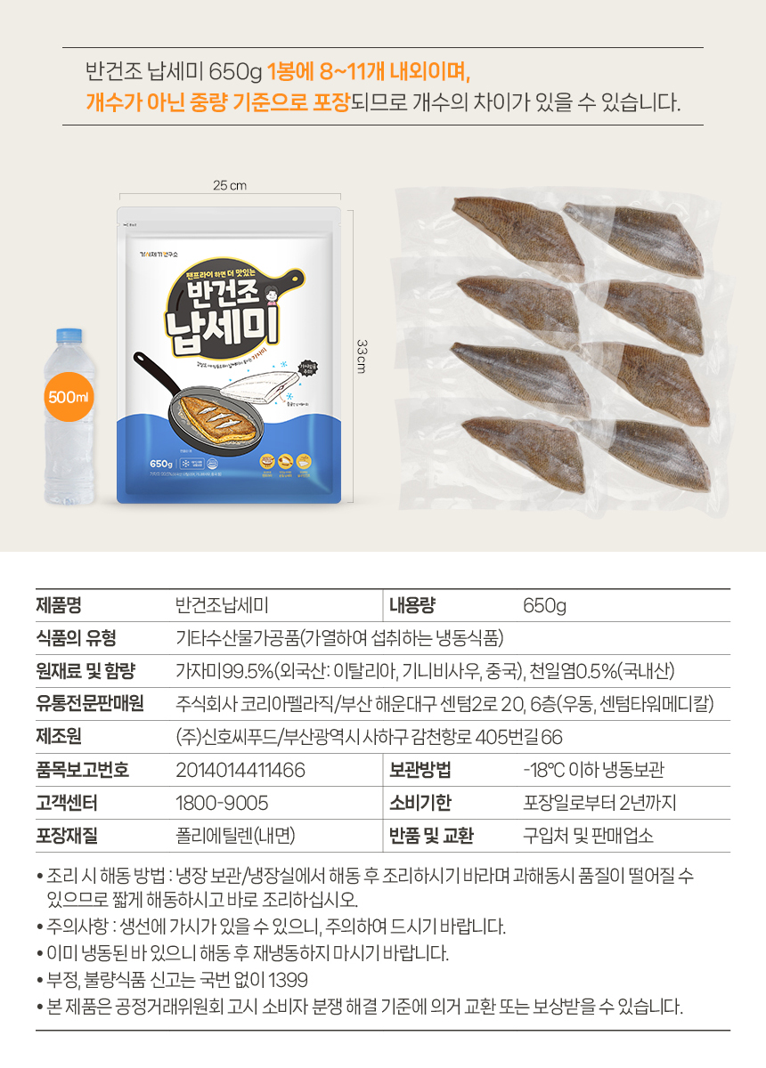 | 보관방법 또는 취급방법 | -18℃ 이하 냉동보관 |