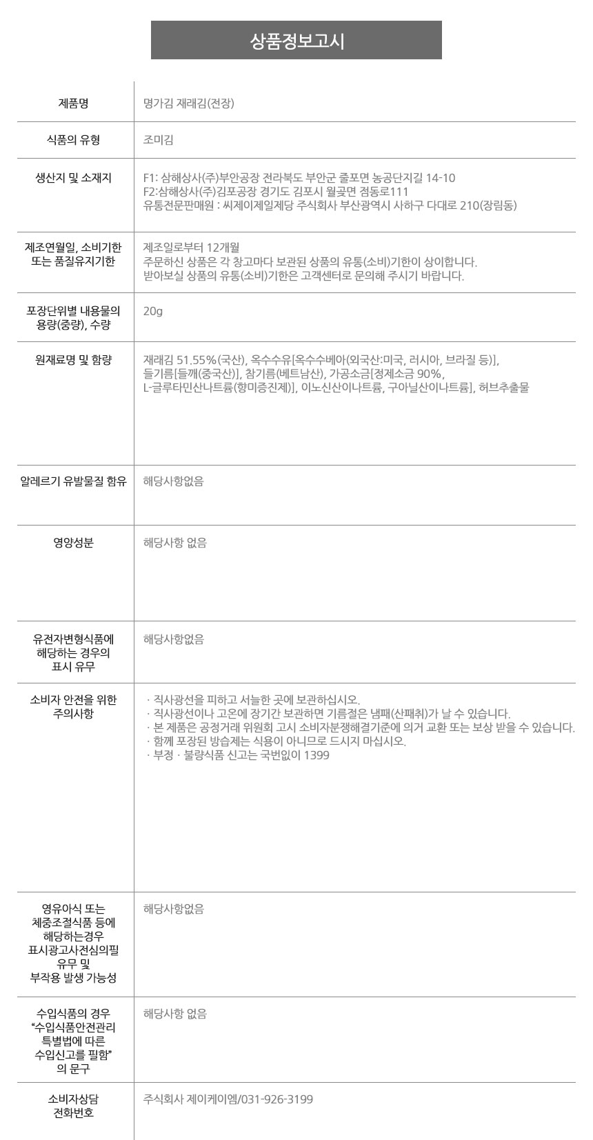 | 유전자변형식품 해당 여부 | 해당사항 없음 |