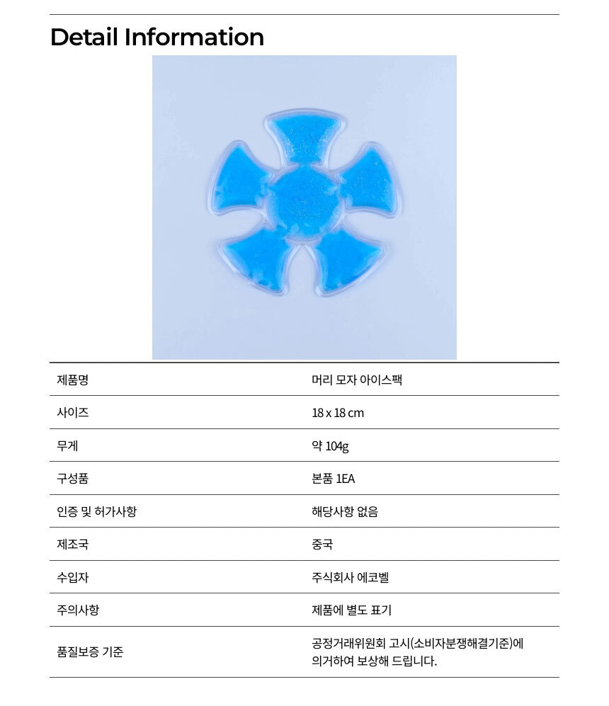 | 품명 및 모델명 | 머리 모자 아이스팩 / ECLISTPA17_E |