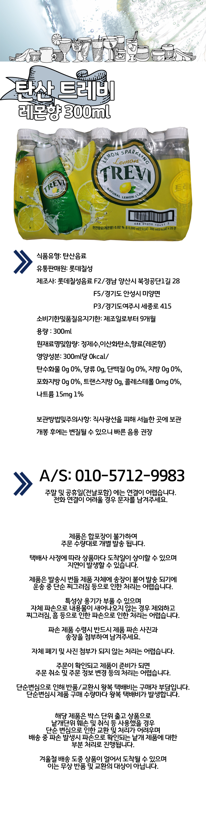 | 포장단위별 내용물의 용량(중량),수량 | 트레비 레몬향 300mlx20개입 |