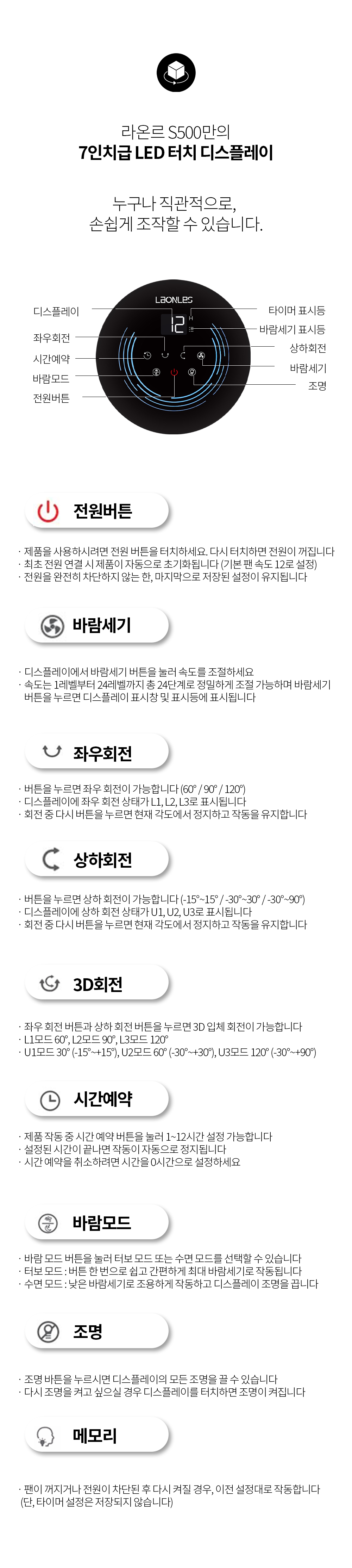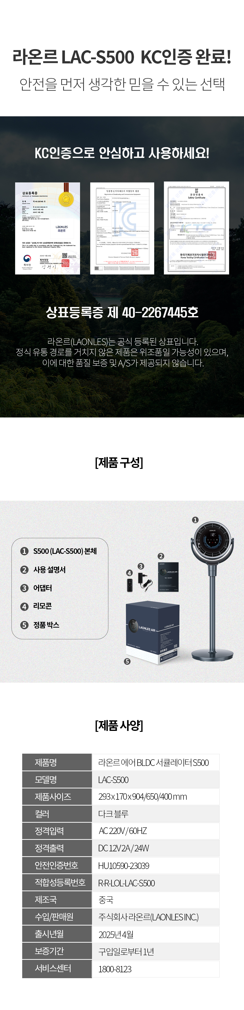 | 품명 및 모델명 | 라온르 에어 BLDC 서큘레이터 3D입체회전 S500 |