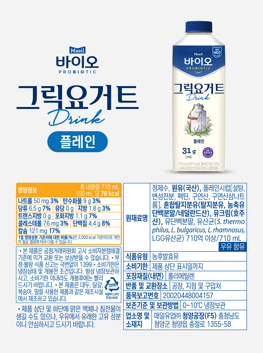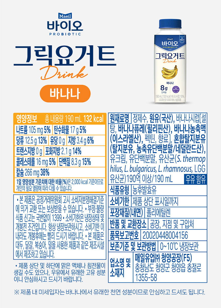 매일 바이오 그릭요거트 드링크 바나나 710ml 3개상품상세_동원몰
