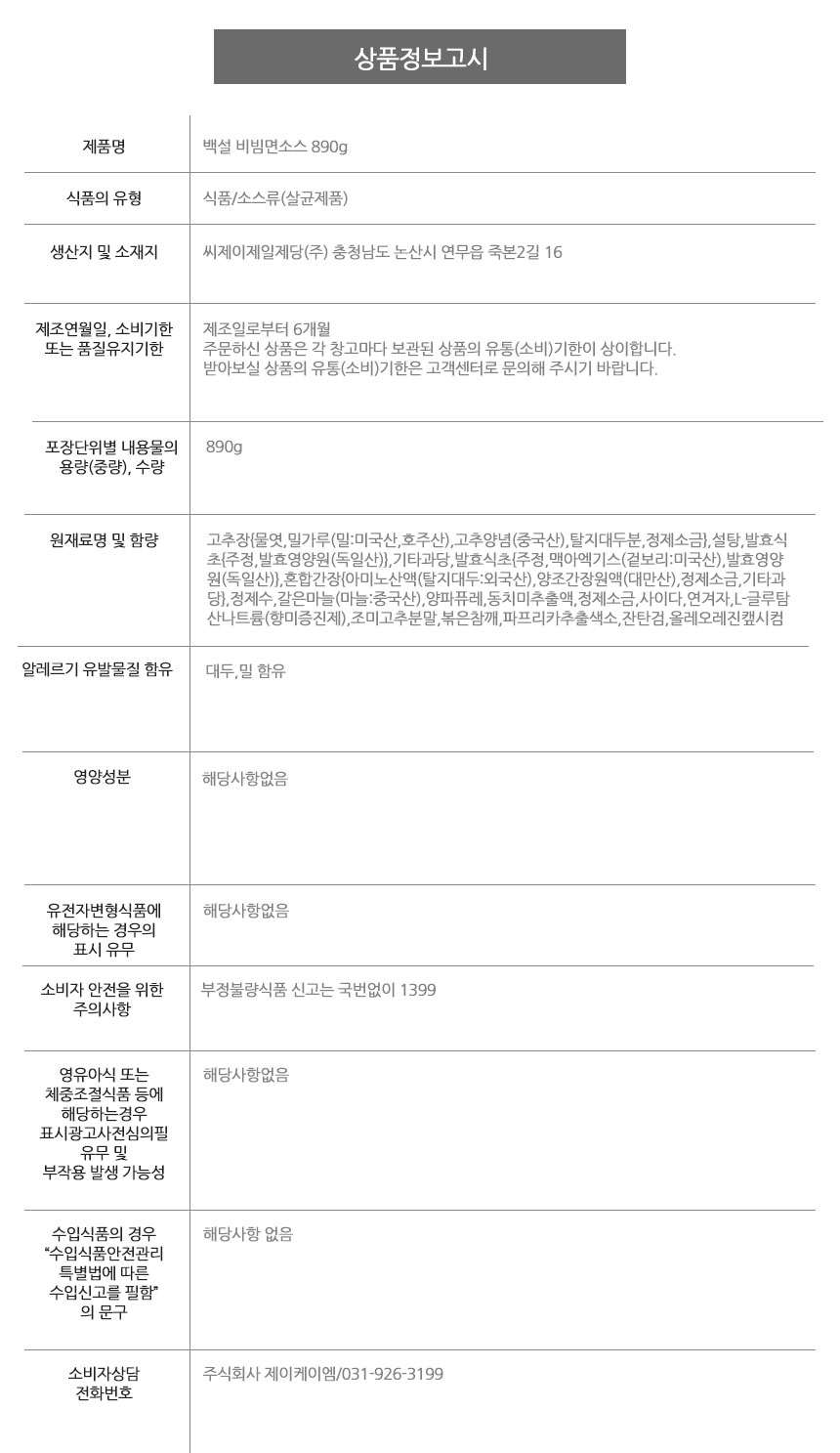 | 소비자상담 관련 전화번호 | 031-926-3199 |