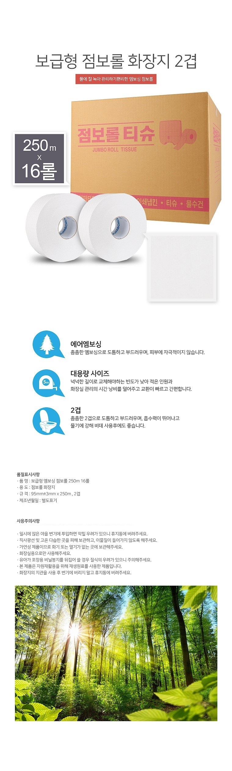 | 품명 및 모델명 | 2겹 점보롤 티슈 휴지 화장지 롤휴지 1BOX 16롤 / 상세정보별도표시 |