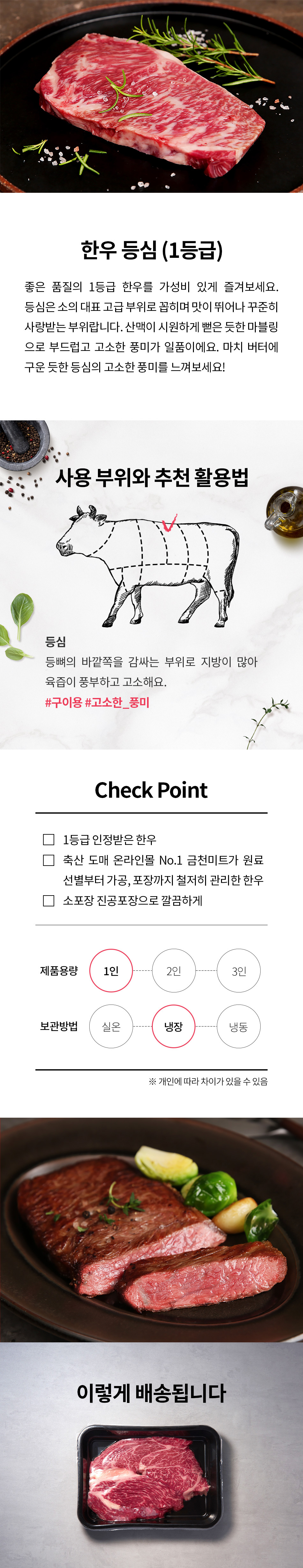 | 상품구성 | 금천한우 1등급 등심 구이용 200g*2팩 |
